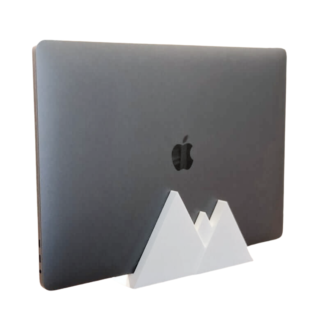 Μια απλή αλλά στιβαρή κάθετη βάση για Macbook Pro με ενσωματωμένο ορεινό τοπίο. Η ίδια η τρύπα στην οποία κάθεται το Macbook έχει πλάτος 1,62 cm και επομένως ταιριάζει στα περισσότερα μοντέλα.
