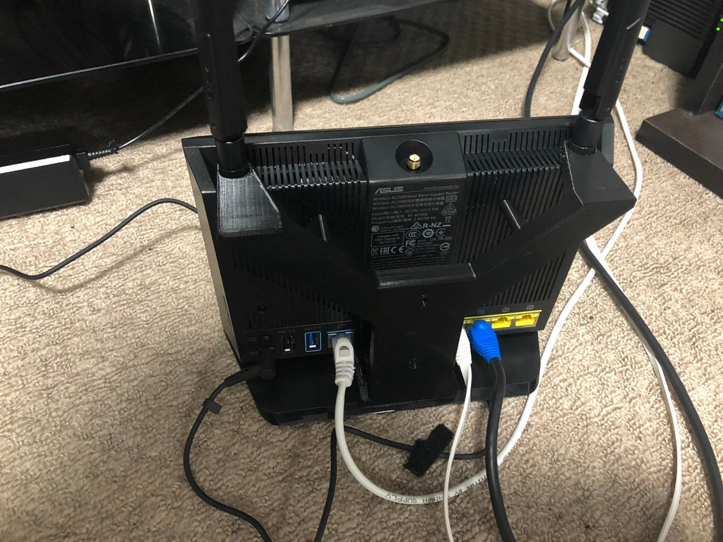 Απλή βάση/κρεμάστρα τοίχου για ένα router ASUS RT-AC86U. Το ίδιο το router στερεώνεται στην κρεμάστρα μέσω των κεραιών.
