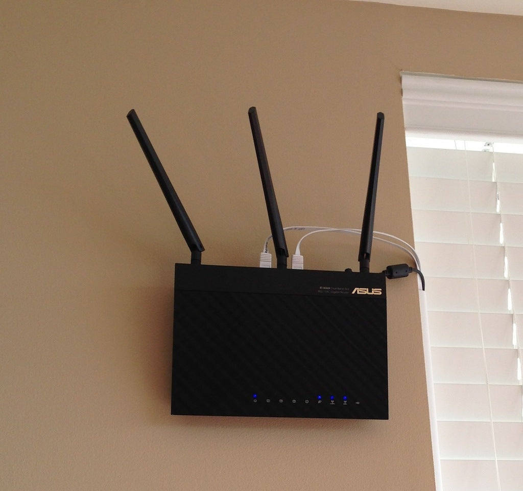 Υπάρχουν δύο τρύπες για βυθισμένες βίδες που εισέρχονται στον τοίχο και οι μικρές τετράγωνες φλάντζες εμπλέκονται με τις τρύπες στο πίσω μέρος του router.