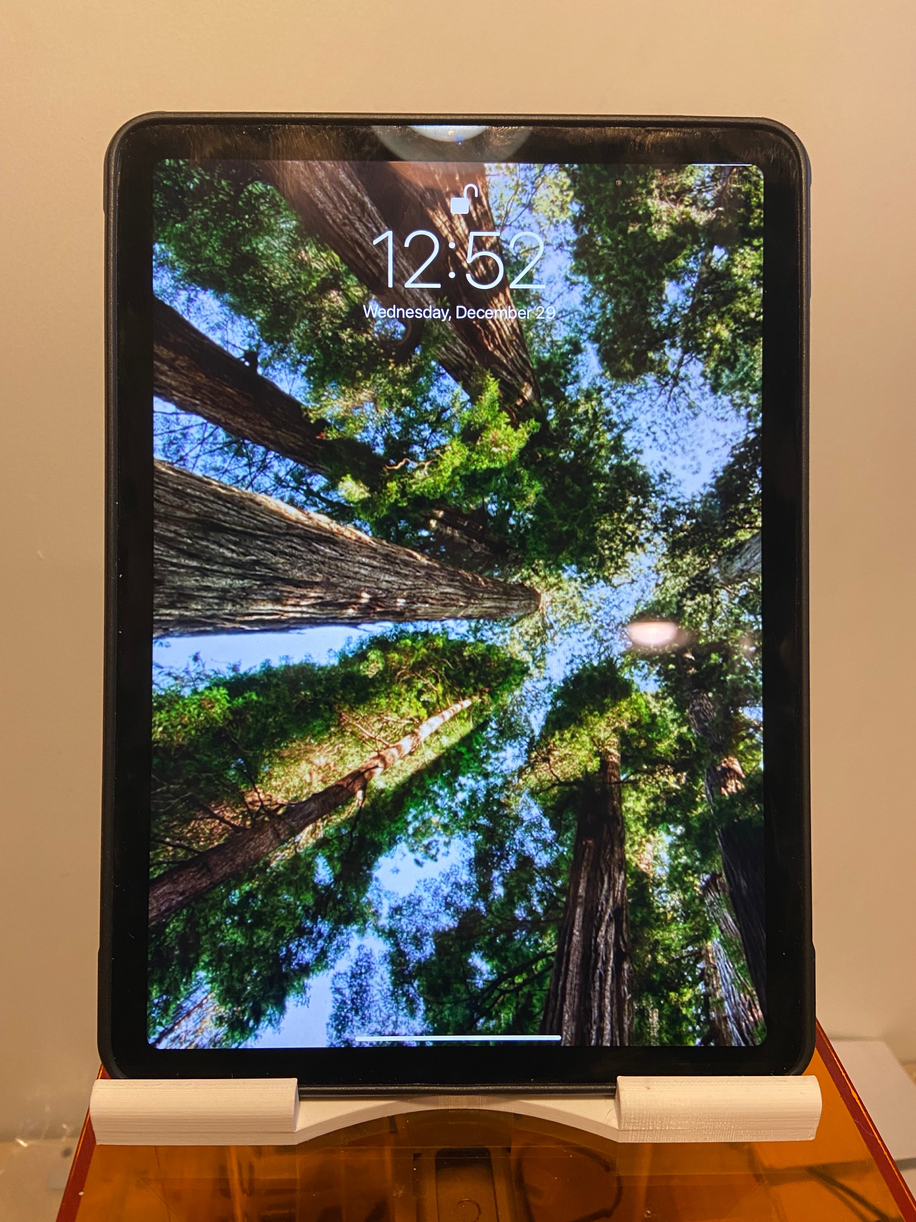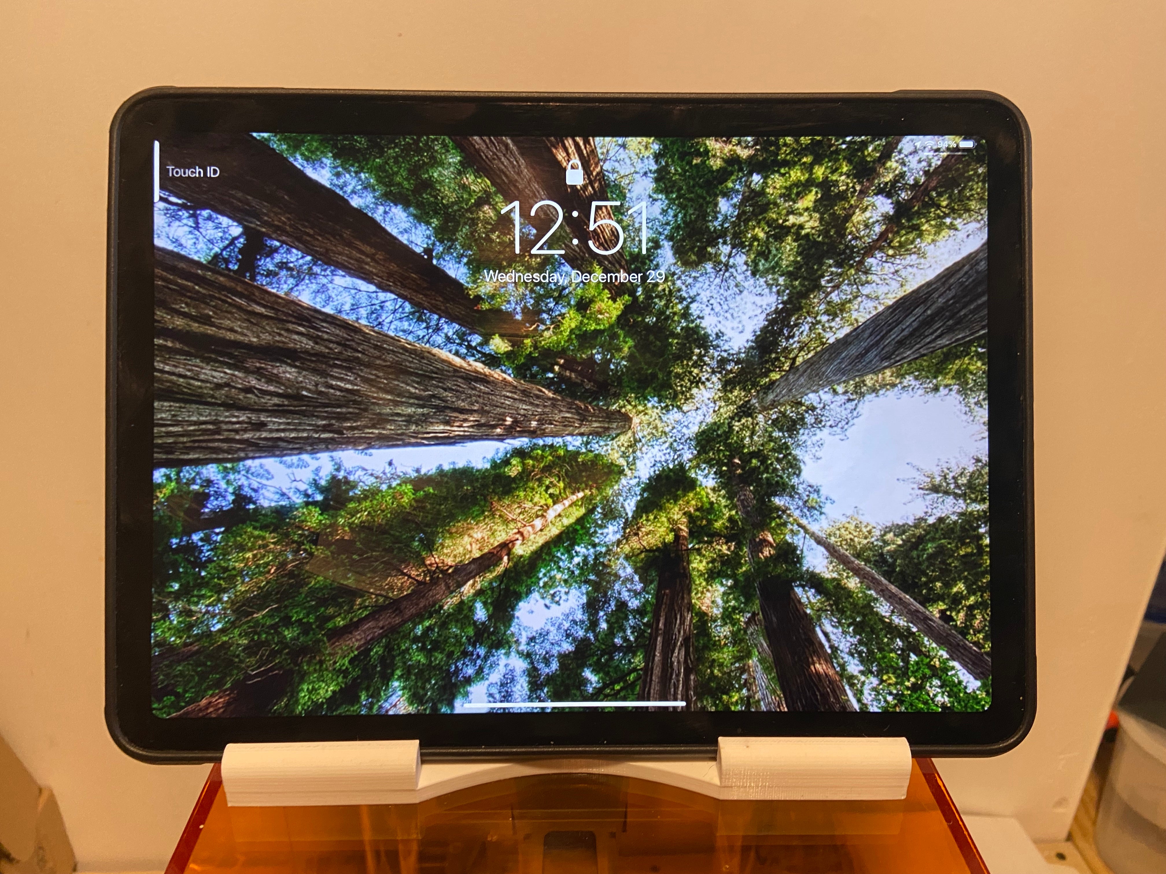 Σταθερή βάση iPad σχεδιασμένη για να κρατάει το iPad σας στη θέση του ενώ το χρησιμοποιείτε. Το μεγάλο κανάλι του επιτρέπει τη χρήση της βάσης ακόμα και με προστατευτική θήκη στο iPad σας. Δεν θα πέσει όταν πιέζετε την οθόνη κατά τη διάρκεια της επιλογής ή του swiping. Αυτό το προϊόν είναι κατασκευασμένο για να αντέχει την επανειλημμένη χρήση. Οι εικόνες δείχνουν το σταντ τοποθετημένο πάνω σε εκτυπωτή ρητίνης, αλλά έχει εκτυπωθεί σε Prusa MK3S.