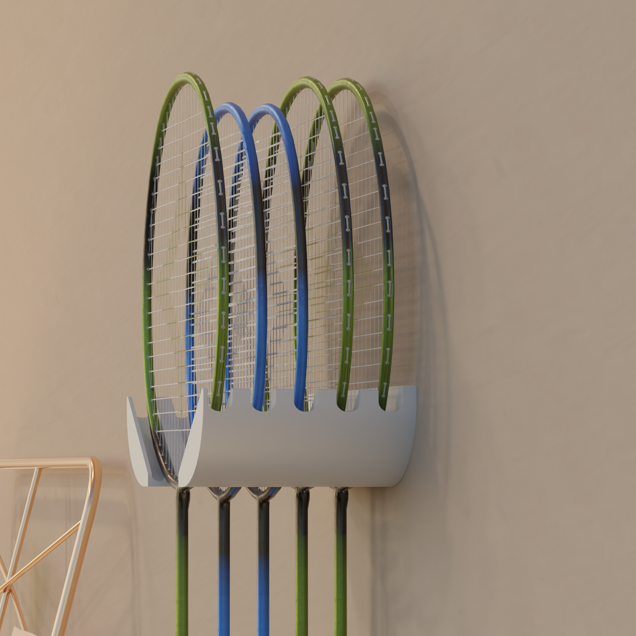 Αυτή η κρεμάστρα έχει σχεδιαστεί για να χωράει έως και 5 ρακέτες ταυτόχρονα. Μπορεί να τοποθετηθεί στον τοίχο χρησιμοποιώντας δύο βίδες (δεν περιλαμβάνονται), γεγονός που βοηθά να διατηρείτε τον αθλητικό σας εξοπλισμό οργανωμένο και εύκολα προσβάσιμο.