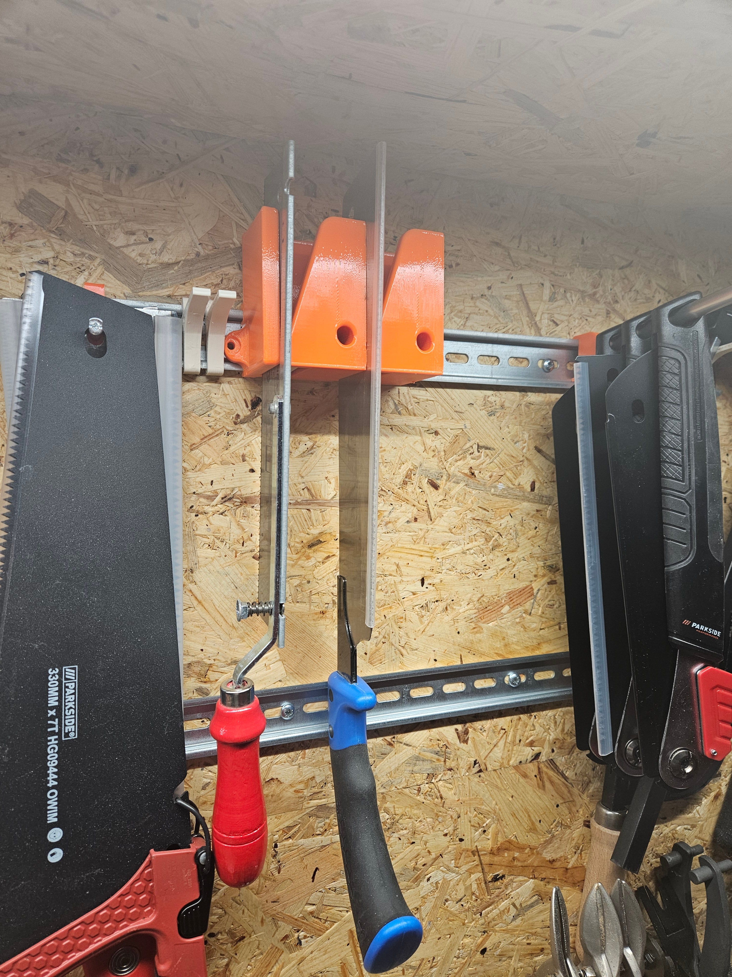 - Αποτελεσματική αποθήκευση πριονιών σε συστήματα του σιδηροδρόμου DIN.