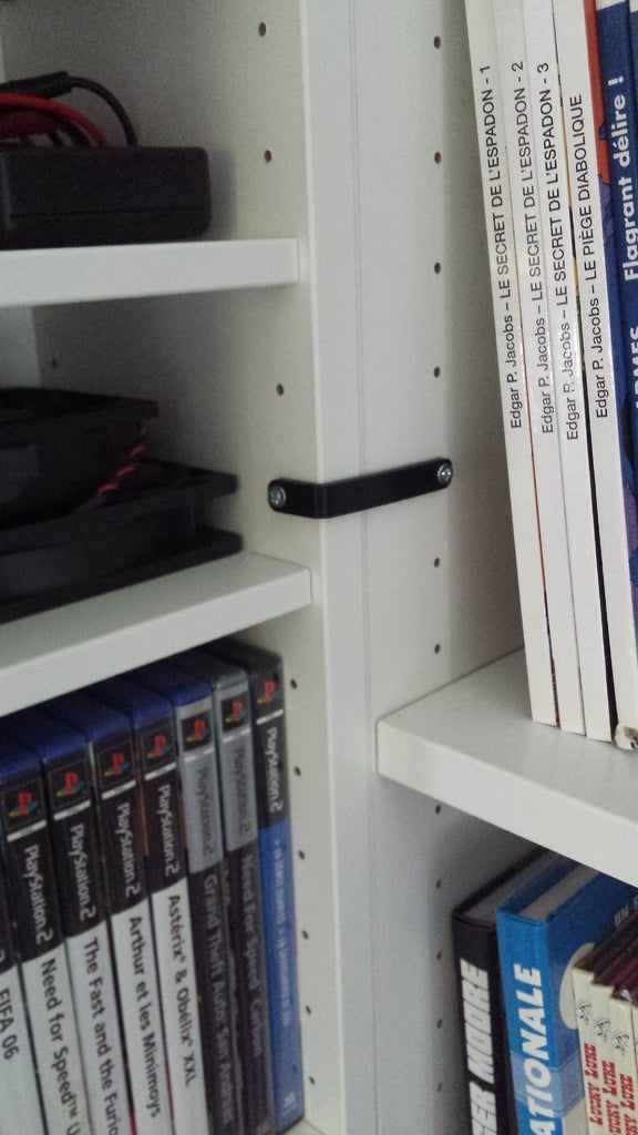 Αυτός ο βραχίονας έχει σχεδιαστεί για να χωράει δύο ράφια IKEA BILLY ( http://www.ikea.com/fr/fr/catalog/products/30323353/ ) και ένα ράφι IKEA GNEDBY ( http://www.ikea.com/fr / fr/catalog/products/00323364/ ) σε γωνία. Αυτή η λύση βοηθά στην αποφυγή της ευελιξίας και των κενών μεταξύ των ραφιών και απαιτεί μόνο την αρχική τοποθέτηση για τα ράφια και 2 μικρές βίδες για την τοποθέτηση του βραχίονα.
