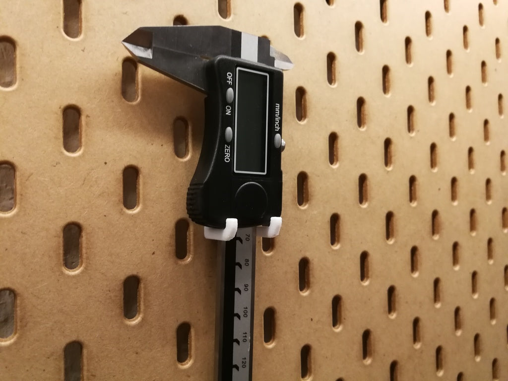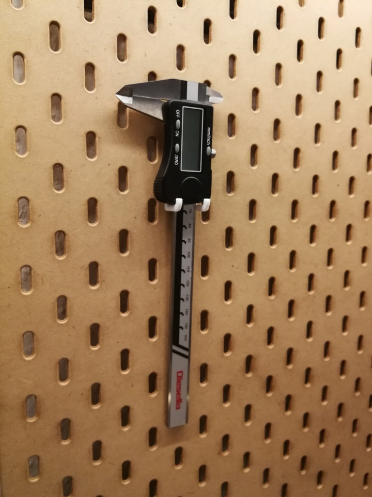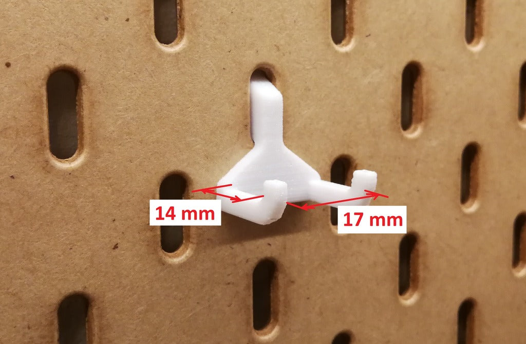 Θήκη δαγκάνων για IKEA Skådis. Αυτή η θήκη έχει σχεδιαστεί για την αποθήκευση ενός διαμετρήματος σε μια πλακέτα ΙΚΕΑ Skådis Pegboard. Η θήκη έχει μήκος 17 mm μεταξύ των δύο γάντζων και βάθος 14 mm, όπως φαίνεται σε μία από τις εικόνες.