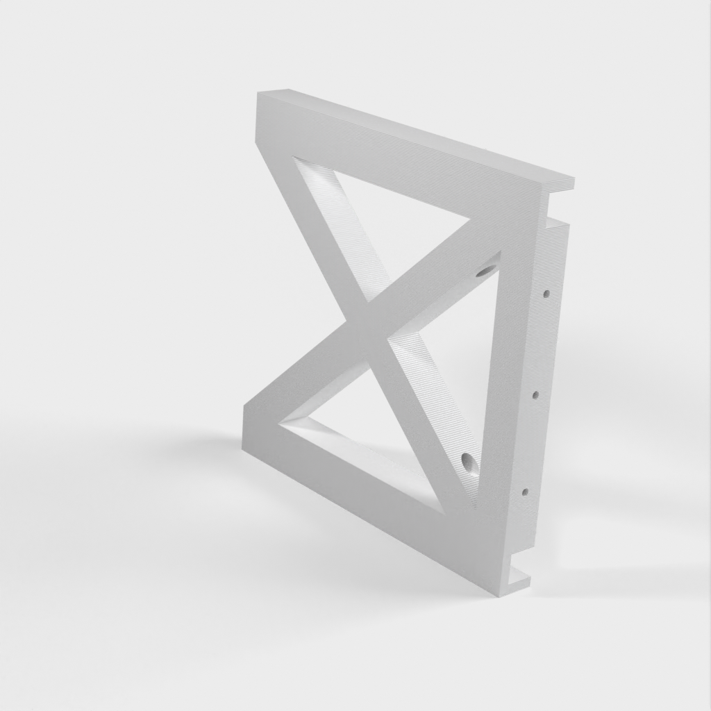 Αυτός ο βραχίονας ράφι έχει σχεδιαστεί για να ταιριάζει στα ράφια Ikea Burhult, αλλά θα ταιριάξει επίσης σε οποιοδήποτε ράφι με τις ίδιες διαστάσεις. Οι οπές βιδών του βραχίονα ταιριάζουν σε βίδες με πλάτος κεφαλής 8,5 mm και πλάτος σπειρώματος 4 mm. Θα χρειαστείτε βιδωτά αγκύρια για να διασφαλίσετε ότι το ράφι δεν θα πέσει από τον τοίχο. Για να κατασκευάσετε 4 από αυτά τα στηρίγματα, χρειάζεστε περίπου 1 kg νήματος. Οι διαστάσεις των στηριγμάτων είναι 200,5 mm x 196,85 mm x 20,25 mm.