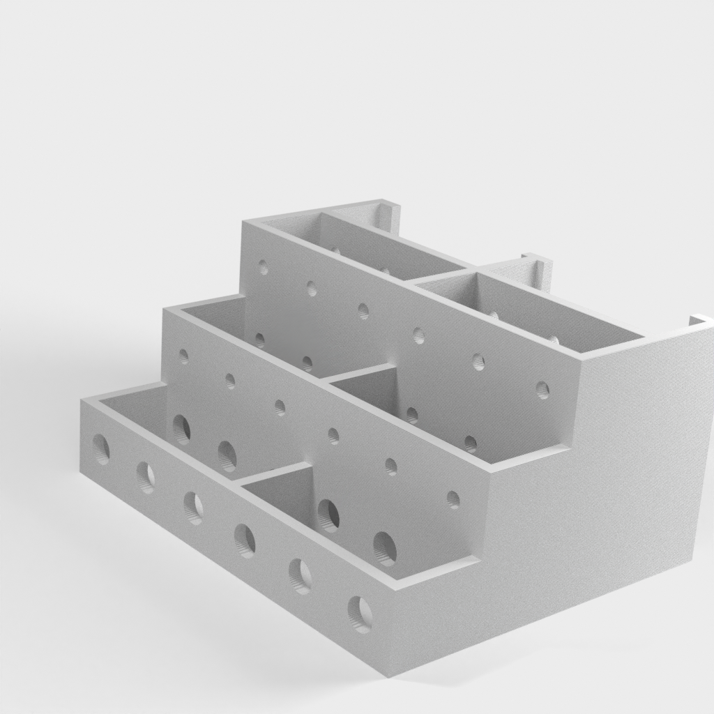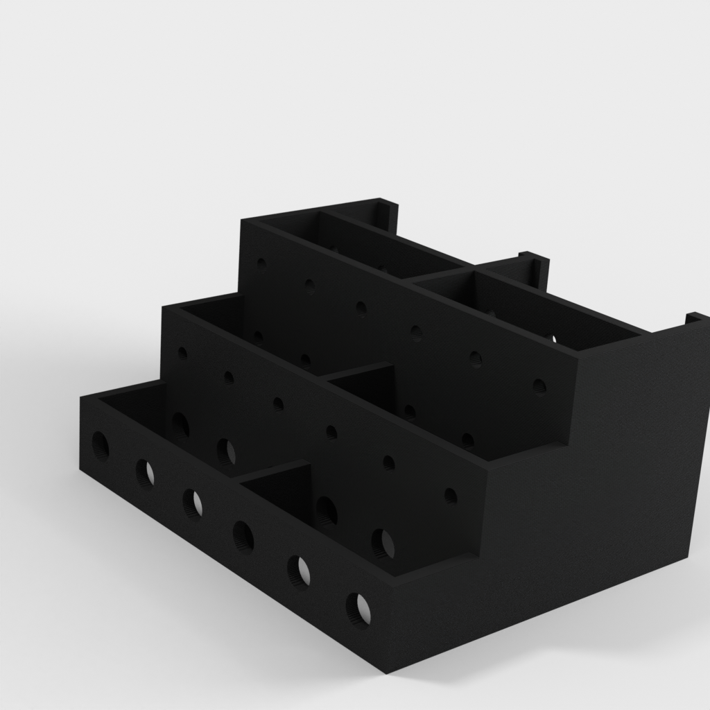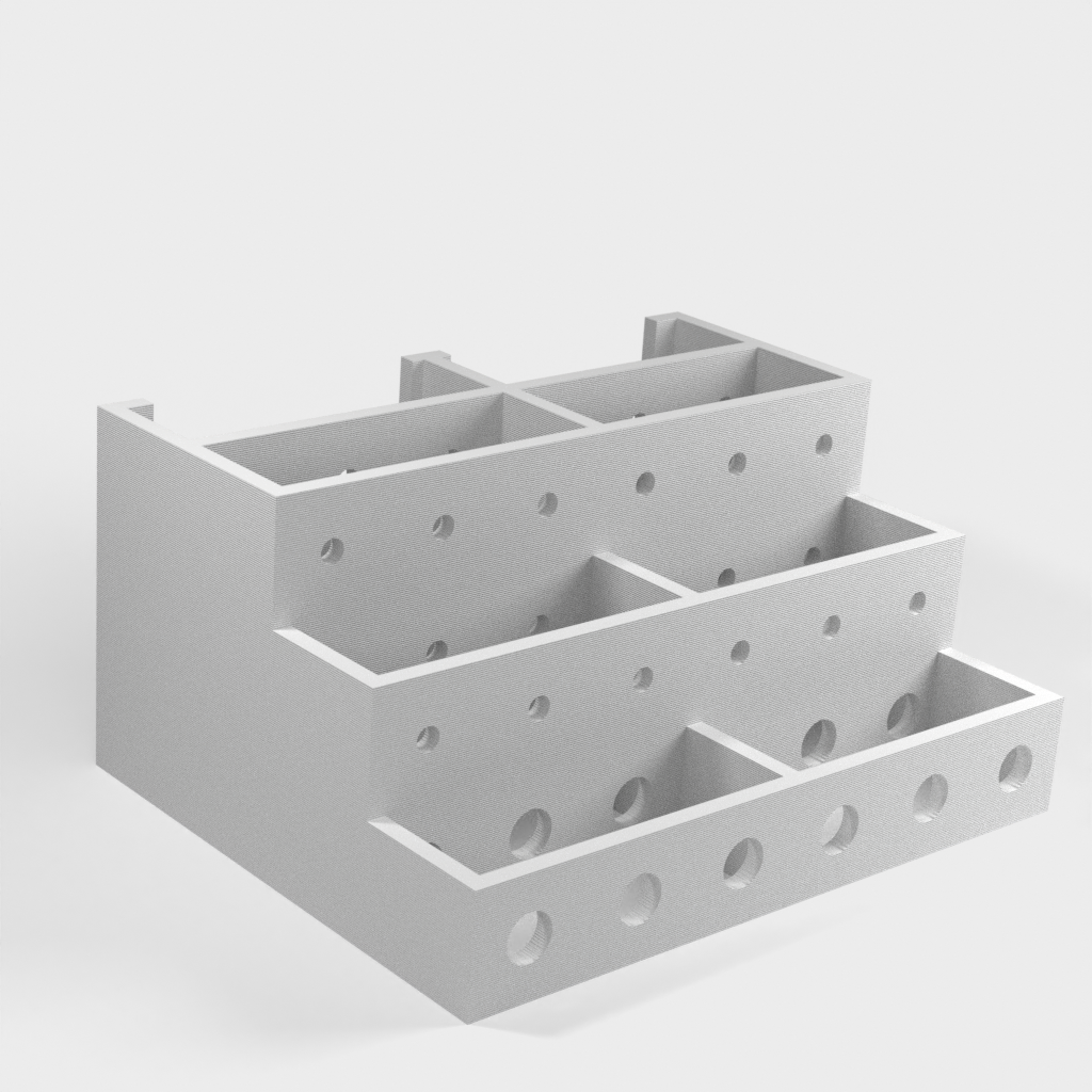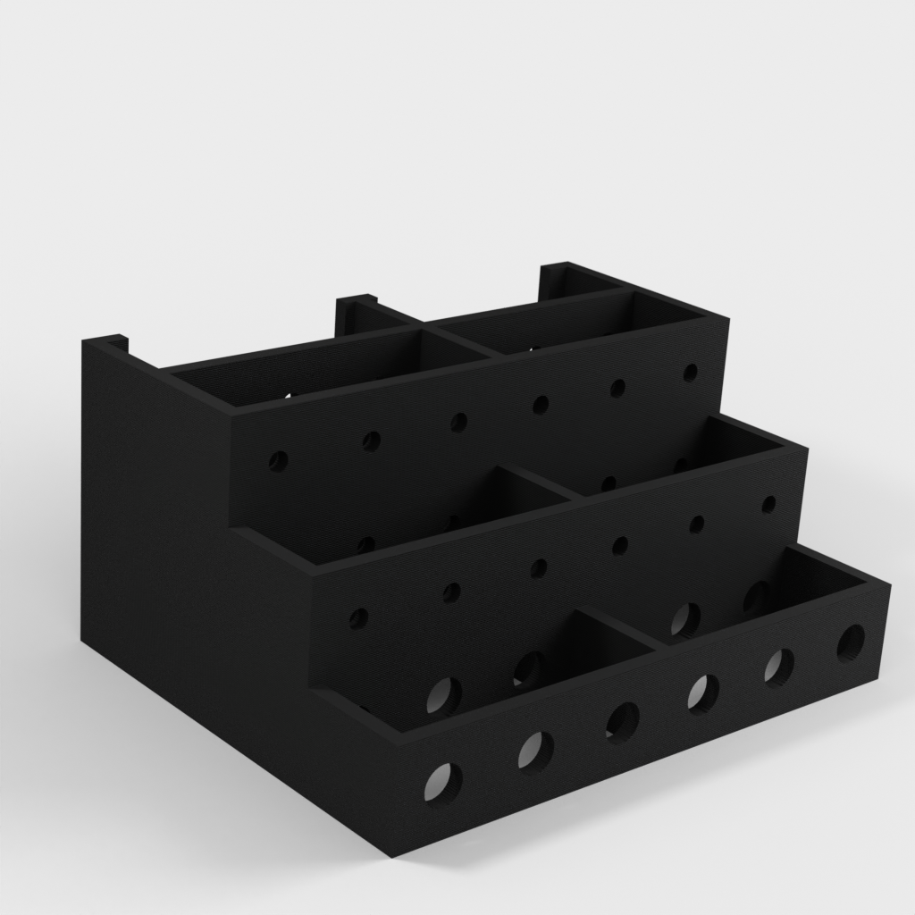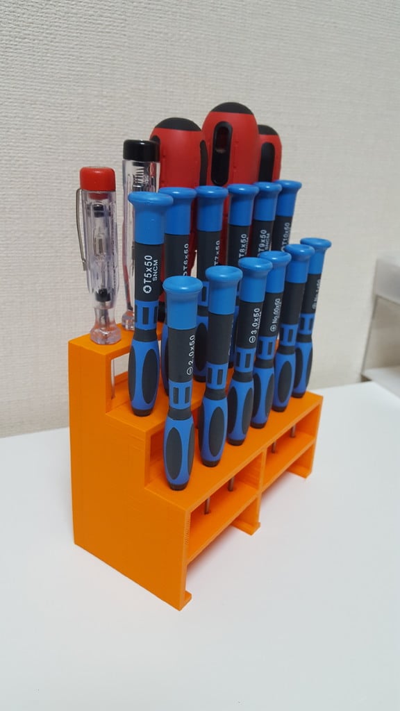Με αυτήν τη θήκη κατσαβιδιών, μπορείτε εύκολα και πρακτικά να παρακολουθείτε τα κατσαβίδια σας. Η θήκη έχει χώρο για 3 σετ των 6 κατσαβιδιών, ώστε να έχετε μια οργανωμένη επισκόπηση των εργαλείων σας ανά πάσα στιγμή. Κάθε κατσαβίδι έχει τη δική του θέση, με τρία επίπεδα για κοντά, μεσαία και μακριά κατσαβίδια. Για μια έκδοση για ανάρτηση στον τοίχο, δείτε αυτό το σχέδιο: https://www.thingiverse.com/thing:1240992