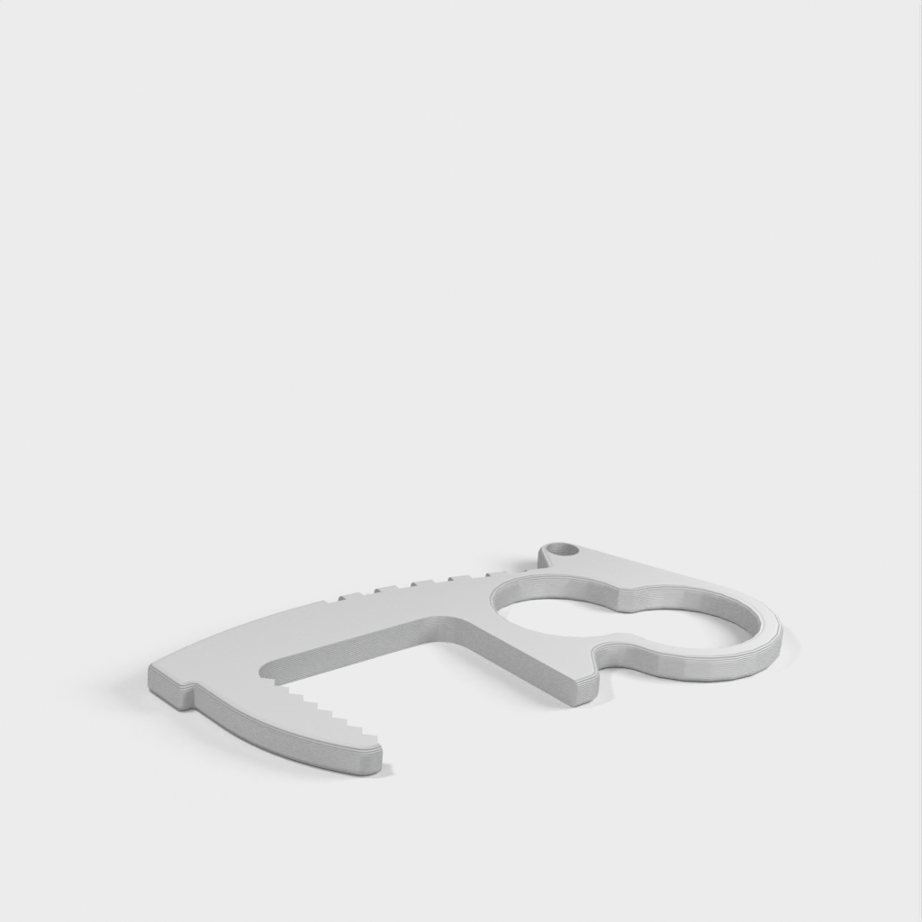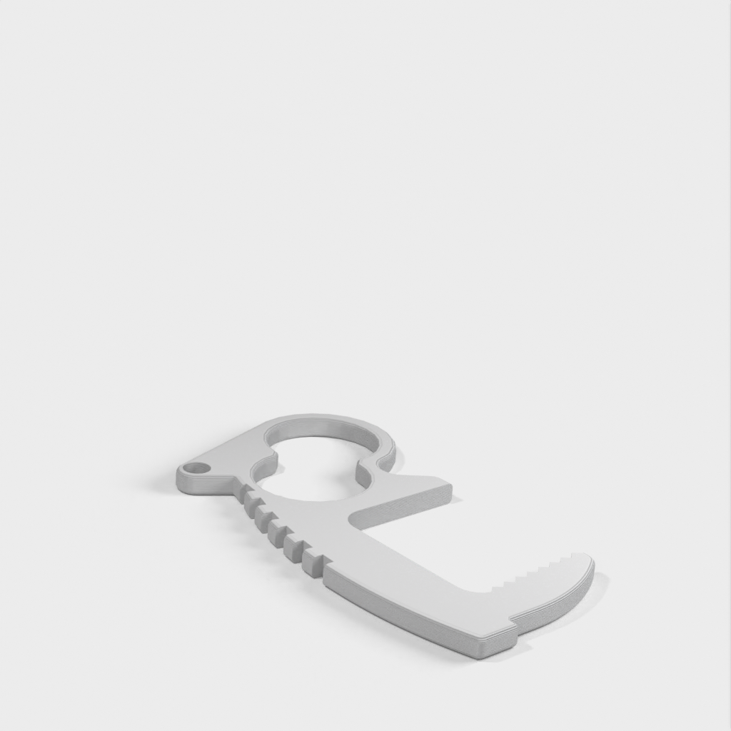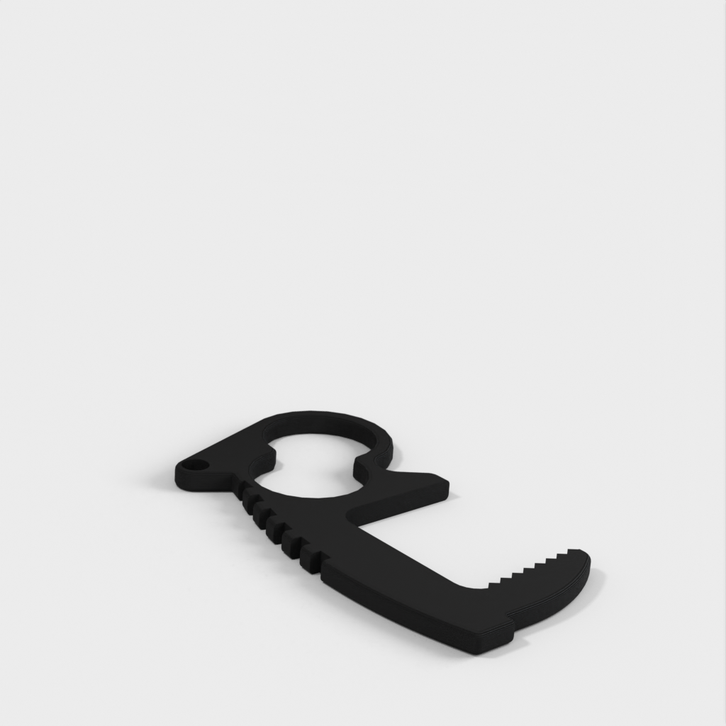 Αποφύγετε την άμεση επαφή με πόμολα, διακόπτες, πληκτρολόγια και πολλά άλλα αντικείμενα με αυτό το μπρελόκ για το άνοιγμα πόρτας χωρίς επαφή. Με το μοναδικό σχεδιασμό δύο οπών, σας επιτρέπει να έχετε τέσσερα διαφορετικά στυλ λαβής. Τα επάνω πλέγματα και οι λαβές αντίχειρα παρέχουν μεγαλύτερη δύναμη από άλλα σχέδια, ενώ η εσωτερική επιφάνεια των δοντιών παρέχει την απαραίτητη τριβή για να είναι εύχρηστη. Κάθε ανοιχτήρι ζυγίζει μόλις 4 γραμμάρια, καθιστώντας το ιδανικό για μπρελόκ, χρήση σε τσέπη, τσάντα φορητού υπολογιστή, χωρίς να προσθέτει αισθητή διαφορά στο βάρος. Η θέση της κλειδαρότρυπας έχει σχεδιαστεί για να συγκρατεί τα κλειδιά με ασφάλεια στο χέρι και να παρέχει αυξημένη μόχλευση. Λειτουργεί επίσης καλά στην άκρη ενός κορδονιού.