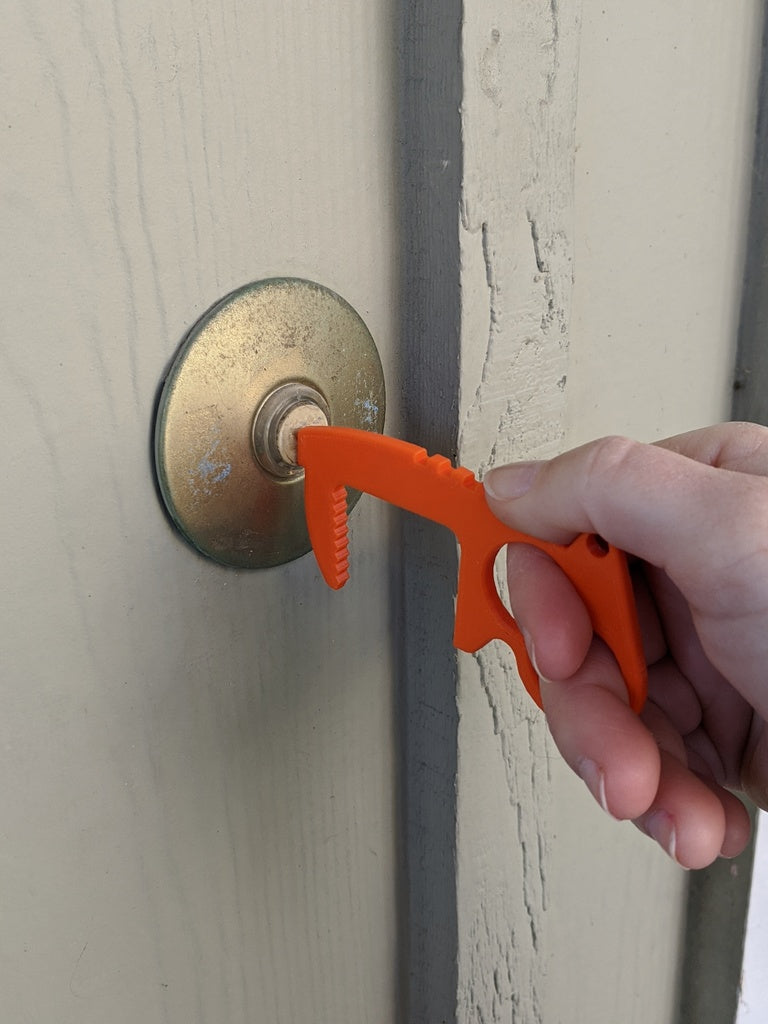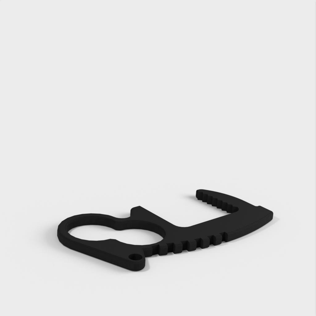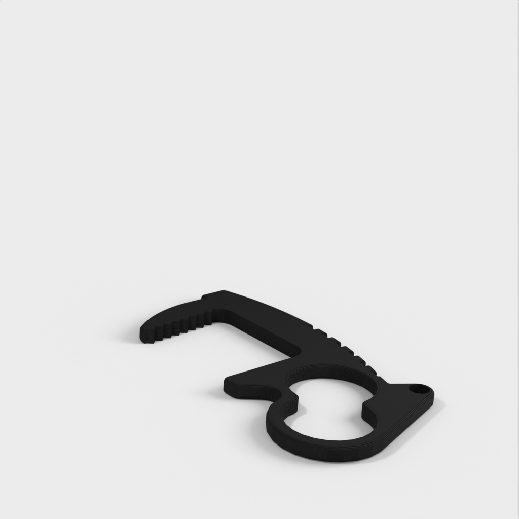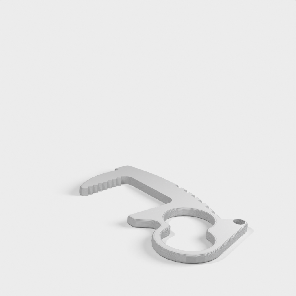 Αποφύγετε την άμεση επαφή με πόμολα, διακόπτες, πληκτρολόγια και πολλά άλλα αντικείμενα με αυτό το μπρελόκ για το άνοιγμα πόρτας χωρίς επαφή. Με το μοναδικό σχεδιασμό δύο οπών, σας επιτρέπει να έχετε τέσσερα διαφορετικά στυλ λαβής. Τα επάνω πλέγματα και οι λαβές αντίχειρα παρέχουν μεγαλύτερη δύναμη από άλλα σχέδια, ενώ η εσωτερική επιφάνεια των δοντιών παρέχει την απαραίτητη τριβή για να είναι εύχρηστη. Κάθε ανοιχτήρι ζυγίζει μόλις 4 γραμμάρια, καθιστώντας το ιδανικό για μπρελόκ, χρήση σε τσέπη, τσάντα φορητού υπολογιστή, χωρίς να προσθέτει αισθητή διαφορά στο βάρος. Η θέση της κλειδαρότρυπας έχει σχεδιαστεί για να συγκρατεί τα κλειδιά με ασφάλεια στο χέρι και να παρέχει αυξημένη μόχλευση. Λειτουργεί επίσης καλά στην άκρη ενός κορδονιού.
