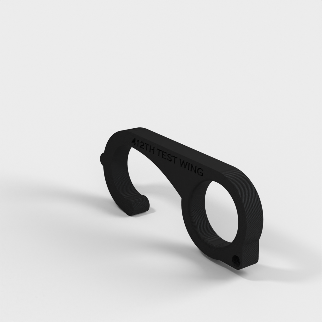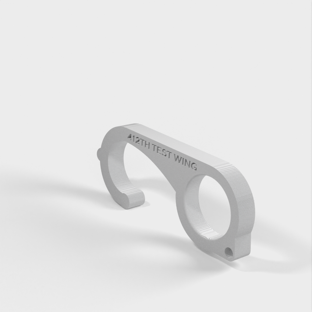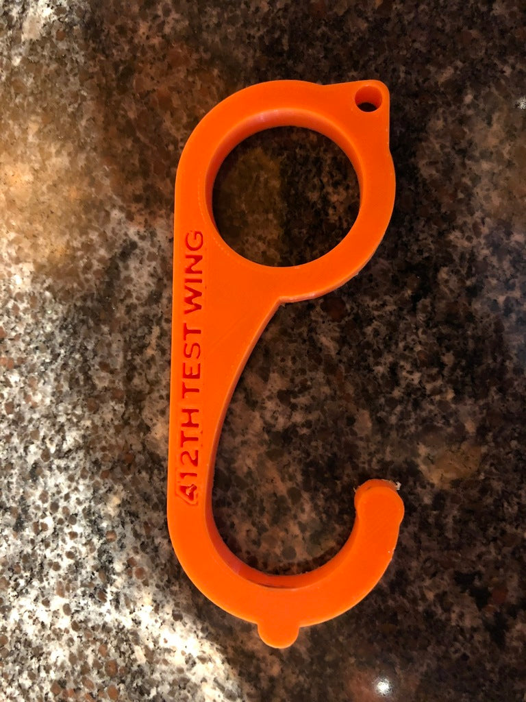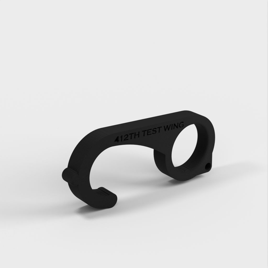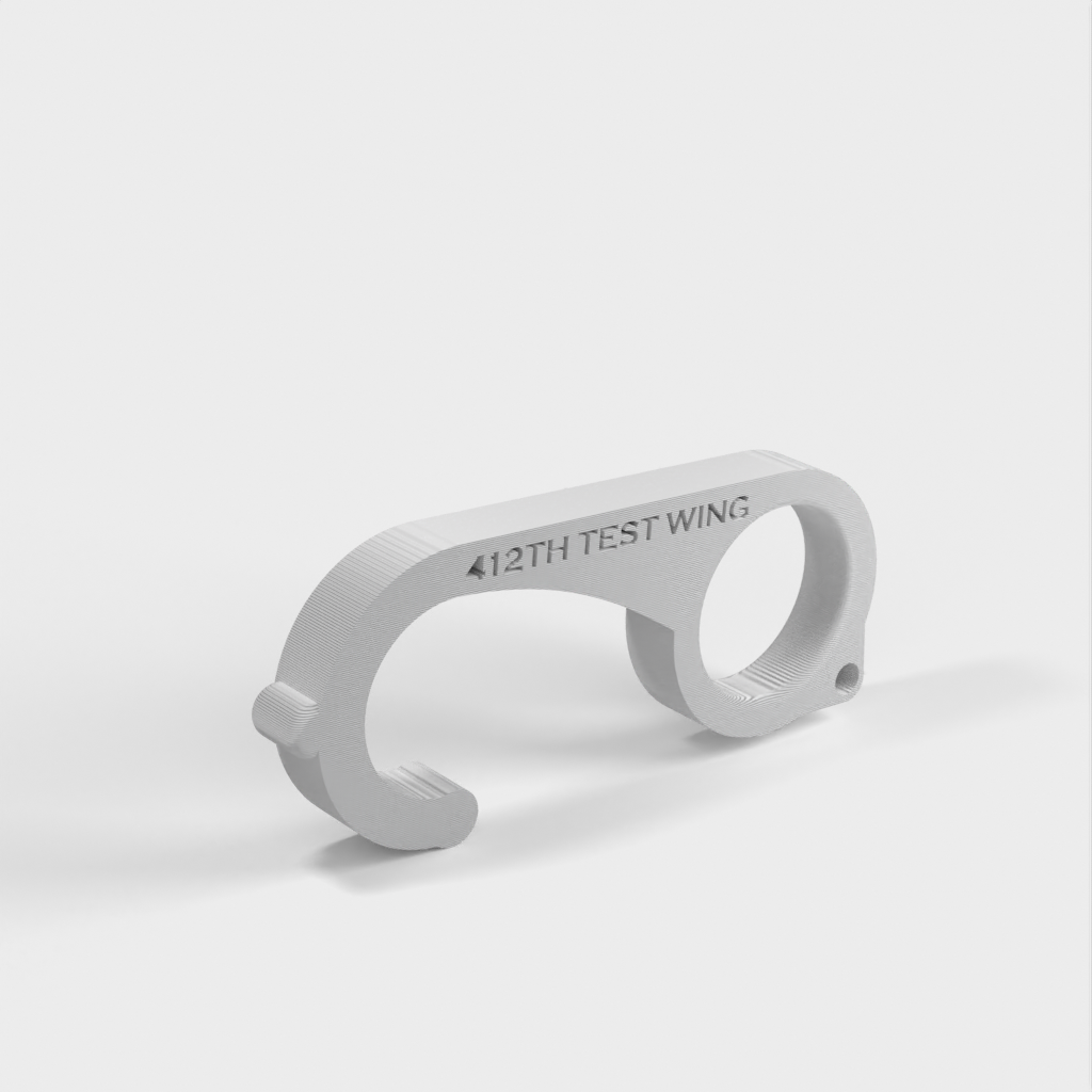 Αγκίστρι No-Touch κατασκευασμένο από την 412η Πτέρυγα Δοκιμών στην αεροπορική βάση Edwards. Αυτό το άγκιστρο έχει δοκιμαστεί σε μια ποικιλία διαφορετικών θυρών και η τρέχουσα επανάληψη του σχεδιασμού δεν έχει αποτύχει ακόμα.