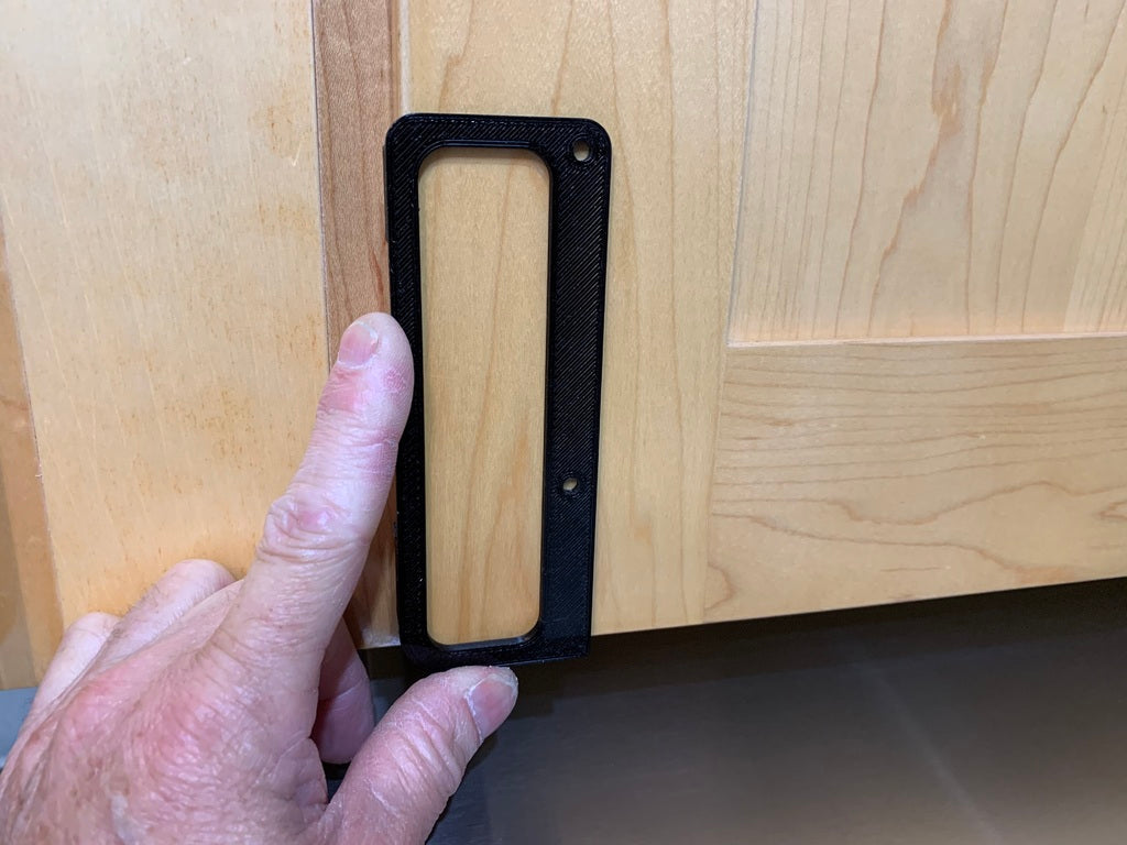 Υποδείγματα για διάτρηση λαβών σε ντουλάπια και συρτάρια, σχεδιασμένα για λαβές με 2 βίδες και απόσταση βιδών 3'. Μπορείτε να λάβετε τόσο μια αριστερόχειρη όσο και μια δεξιόχειρη έκδοση του προτύπου πόρτας αντικατοπτρίζοντας το αρχείο STL στο λογισμικό τεμαχισμού σας (γεννήτρια Gcode). Το πρότυπο συρταριού ταιριάζει απόλυτα στη θέση του στα επάνω συρτάρια. Σημειώστε το κέντρο από αριστερά προς τα δεξιά σε ένα κομμάτι ταινίας. Για τα ψηλότερα, χαμηλότερα συρτάρια, κολλήστε ένα κομμάτι ταινίας στο μπροστινό μέρος του συρταριού για να σημειώσετε το κέντρο του συρταριού. Υπάρχει μια τρύπα στο κέντρο του προτύπου, ώστε να μπορείτε να βρείτε εύκολα τα σημάδια σας.