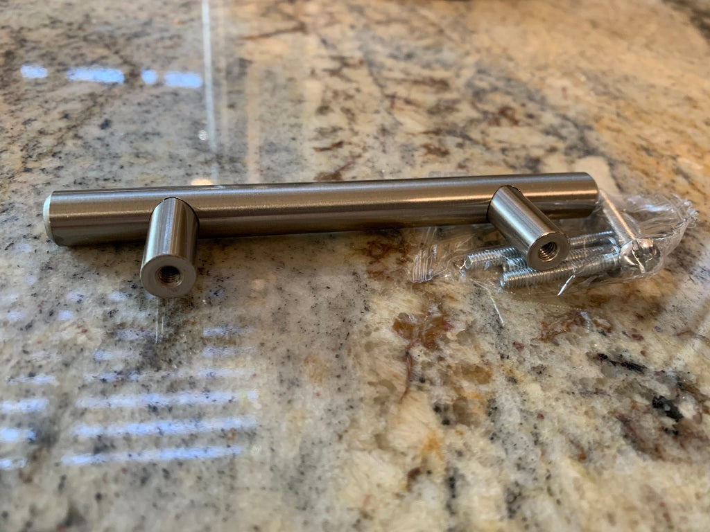 Συμβουλή χρήστη: Ανοίξτε προσεκτικά την πρώτη τρύπα για βίδες και συγκρατήστε το πρότυπο στη θέση του εισάγοντας μια βίδα μέσα από το πρότυπο και μέσα στην τρύπα. Χρησιμοποιήστε συμπαγείς λαβές αντί για κοίλες λαβές για καλύτερα αποτελέσματα. Οι συμπαγείς λαβές που χρησιμοποίησα αγοράστηκαν από το Amazon.