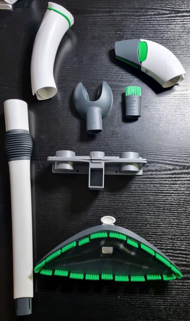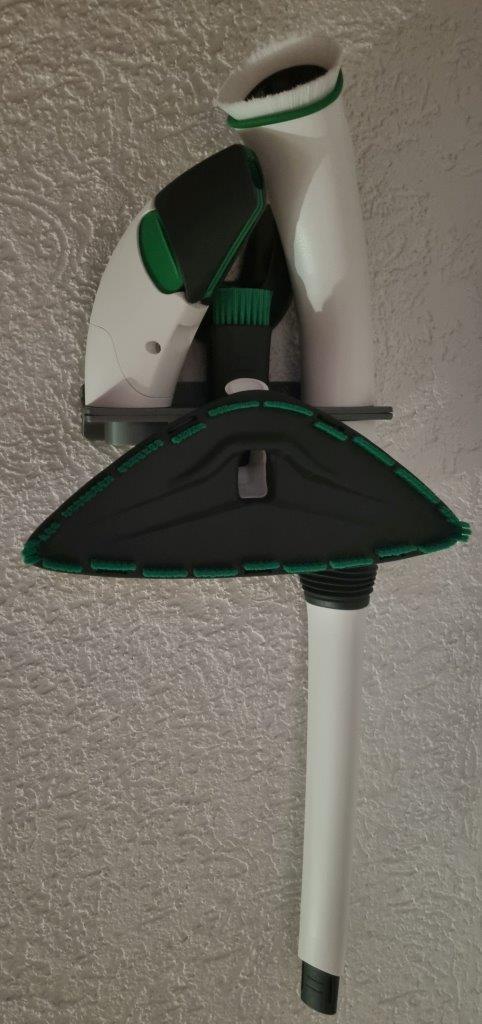 Αυτή είναι μια βάση τοίχου που προορίζεται για το σετ αξεσουάρ της ηλεκτρικής σκούπας Vorwerk Kobold. Η Vorwerk είναι γνωστή για την κατασκευή καλά μελετημένων συσκευών, αλλά δεν σκέφτεται πώς να αποθηκεύσει σωστά τα αξεσουάρ. Αυτή η βάση τοίχου λύνει αυτό το πρόβλημα.