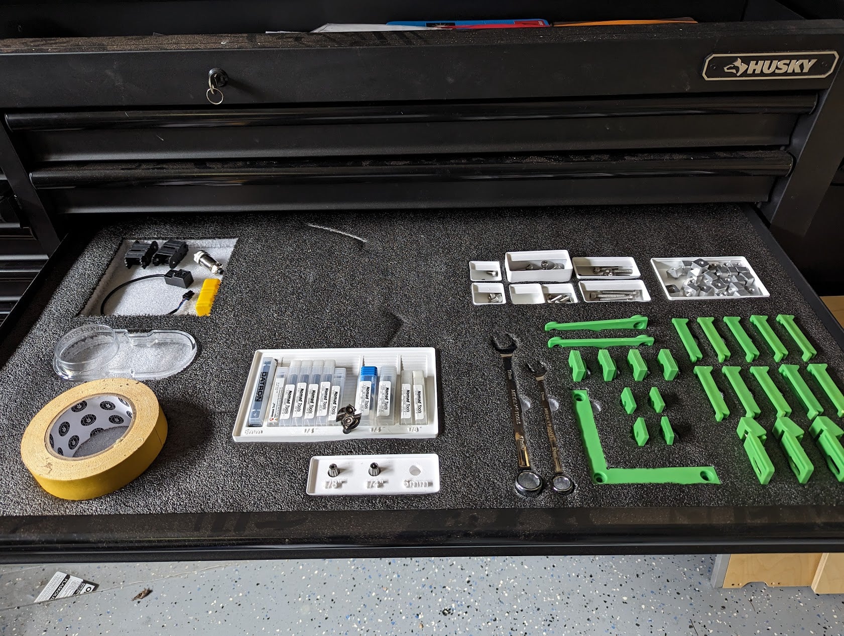 Αρχικά αναπτύχθηκε για να χωρέσει σε εργαλειοθήκη Husky 60" και βελτιστοποιήθηκε για χρήση με Carbide 3D Shapeoko 5 Pro, αυτό το αρχείο προσφέρει ευελιξία, ώστε να μπορείτε να προσαρμόσετε το μέγεθος και τη διάταξη στις συγκεκριμένες ανάγκες σας και στις υπάρχουσες λύσεις αποθήκευσης. Το τελικό ένθετο αφρού βοηθά στην προστασία του εργαλείου σας από ζημιές, μειώνει την ακαταστασία και διευκολύνει και επιταχύνει την εύρεση του σωστού εξοπλισμού όταν εργάζεστε. Συμβάλλει σε έναν πιο οργανωμένο και αποτελεσματικό χώρο εργασίας.