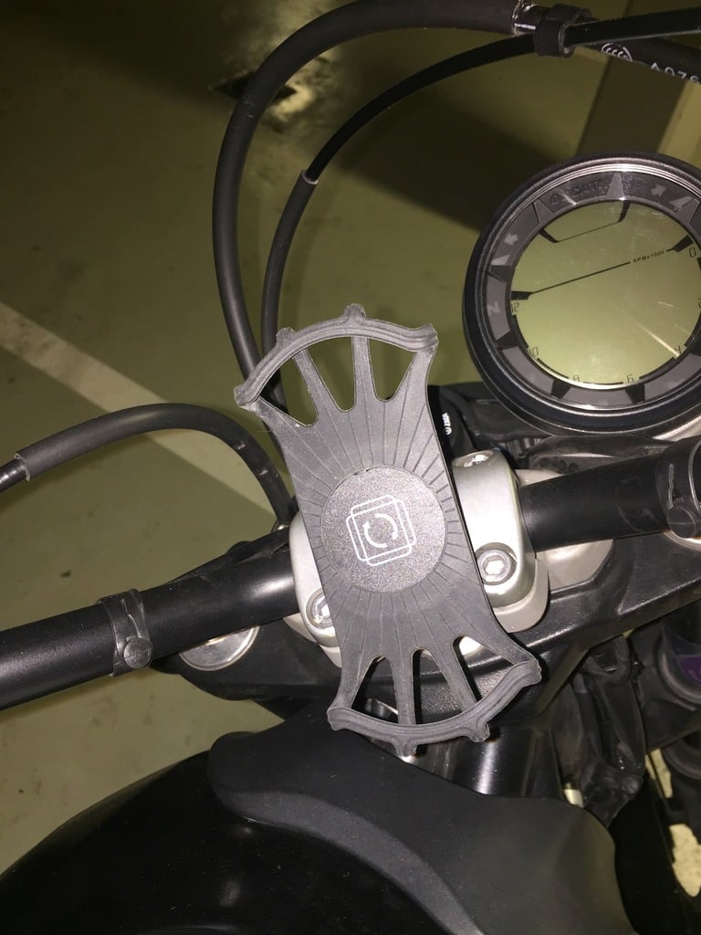 Το smartphone σας συγκρατείται με ασφάλεια στη θέση του με τέσσερις ισχυρούς λαστιχένιους ιμάντες που πιάνουν κάθε γωνία του τηλεφώνου. Στη συνέχεια, η σχετική πλάκα τοποθετείται σε μια στιβαρή βάση, η οποία στερεώνεται διακριτικά στο τιμόνι της μοτοσικλέτας σας. Ένα πρακτικό χαρακτηριστικό είναι ότι η πλάκα μπορεί εύκολα να αφαιρεθεί και να περιστραφεί, παρέχοντας βέλτιστη προβολή και ευελιξία κατά την οδήγηση.