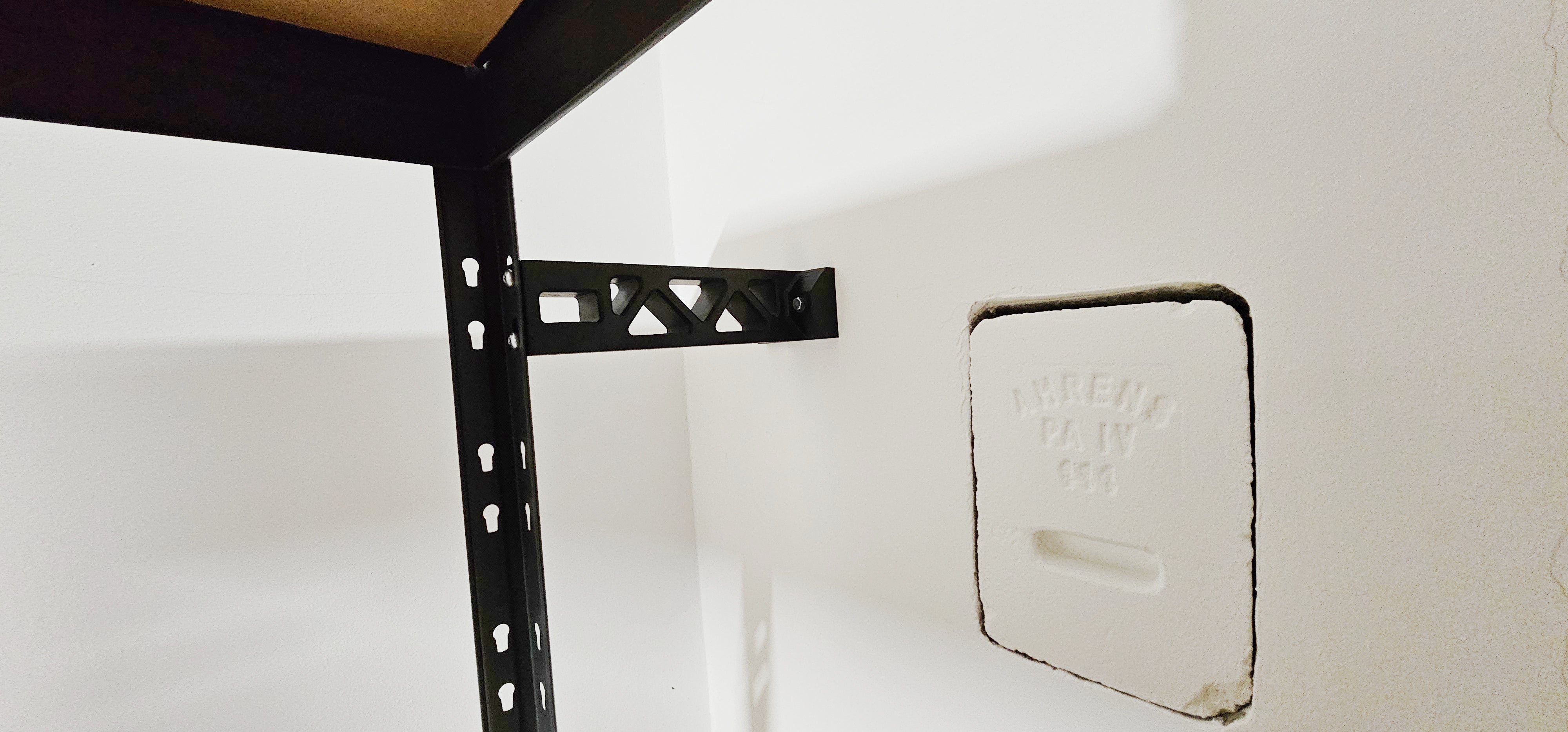 Για ασφαλή εγκατάσταση, κάθε πλευρά του στηρίγματος τοίχου απαιτεί δύο βύσματα Ø8x60mm και βίδες Ø6x80mm για στερέωση στον τοίχο. Το ίδιο το ράφι στερεώνεται στο στήριγμα με δύο βίδες Ø6x50mm, με απόσταση 40mm για ομοιόμορφη ρύθμιση. Αυτό το στήριγμα anti-vibration συμβάλλει τόσο στη σταθερότητα όσο και στην οργάνωση του εξοπλισμού σας και βελτιώνει τη συνολική σας εργασιακή εμπειρία.