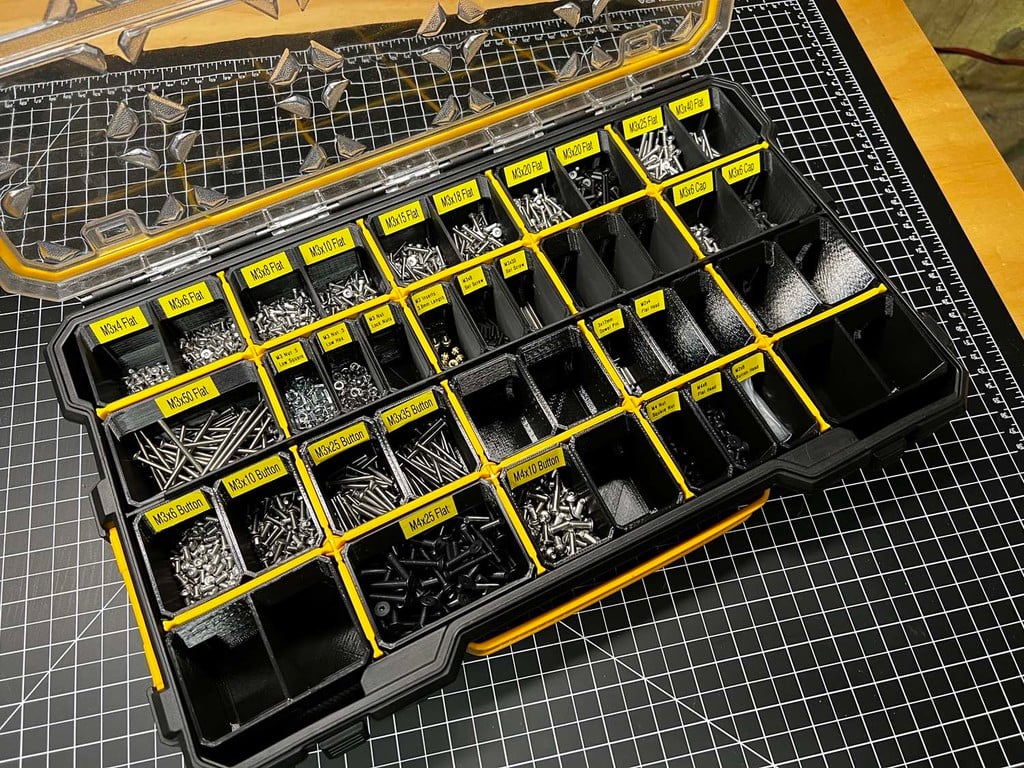 Αυτά τα αρθρωτά κουτιά αποθήκευσης έχουν δημιουργηθεί για να βελτιστοποιήσουν την οργάνωση μικρών εξαρτημάτων στη ρύθμιση του εργαστηρίου σας. Έχουν σχεδιαστεί ειδικά για να χωράνε στον Pro Small Parts Organizer 10 ή 20 τμημάτων της DeWalt, όπου μπορούν να αυξήσουν την χωρητικότητα αποθήκευσης για βίδες, μπουλόνια και άλλα μικρά εξαρτήματα έως και δύο έως τρεις φορές.