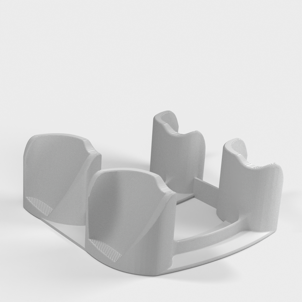 Με αυτήν τη βάση, τα χειριστήριά σας λαμβάνουν μια ασφαλή και σταθερή λύση αποθήκευσης. Βοηθά στην αποφυγή γρατζουνιών και άλλων ζημιών που μπορεί να προκύψουν από χαλαρή αποθήκευση και τα διατηρεί έτοιμα για χρήση. Το συμπαγές σχήμα της βάσης την καθιστά ιδανική για τοποθέτηση στο γραφείο σας, δίπλα στην κονσόλα σας ή σε ένα ράφι, χωρίς να πιάνει περιττό χώρο. Συμβάλλει σε μια βελτιωμένη και οργανωμένη ρύθμιση παιχνιδιών.