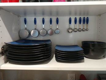 Αυτός ο πρακτικός διοργανωτής έχει σχεδιαστεί για να βελτιστοποιεί την οργάνωση της κουζίνας σας παρέχοντας έναν ειδικό χώρο αποθήκευσης για τα δοσομετρικά φλιτζάνια και τα κουτάλια σας μέσα στο ντουλάπι. Τοποθετείται εύκολα σύροντάς το στην πίσω άκρη ενός υπάρχοντος ραφιού, καθιστώντας την εγκατάσταση γρήγορη και χωρίς την ανάγκη εργαλείων. Η βάση ταιριάζει σε τυπικά ράφια ντουλαπιών με πάχος έως 19 mm (0,75 ίντσες). Κάθε χώρος στη βάση είναι σαφώς σημειωμένος με το μέγεθος του αντίστοιχου δοσομετρικού φλιτζανιού ή κουταλιού, διασφαλίζοντας ότι βρίσκετε γρήγορα το σωστό μέγεθος για το μαγείρεμα ή το ψήσιμό σας. Αυτή η οικονομική λύση βοηθά να διατηρείτε τα απαραίτητα μαγειρικά σας σκεύη σε κοντινή απόσταση και το ντουλάπι τακτοποιημένο.