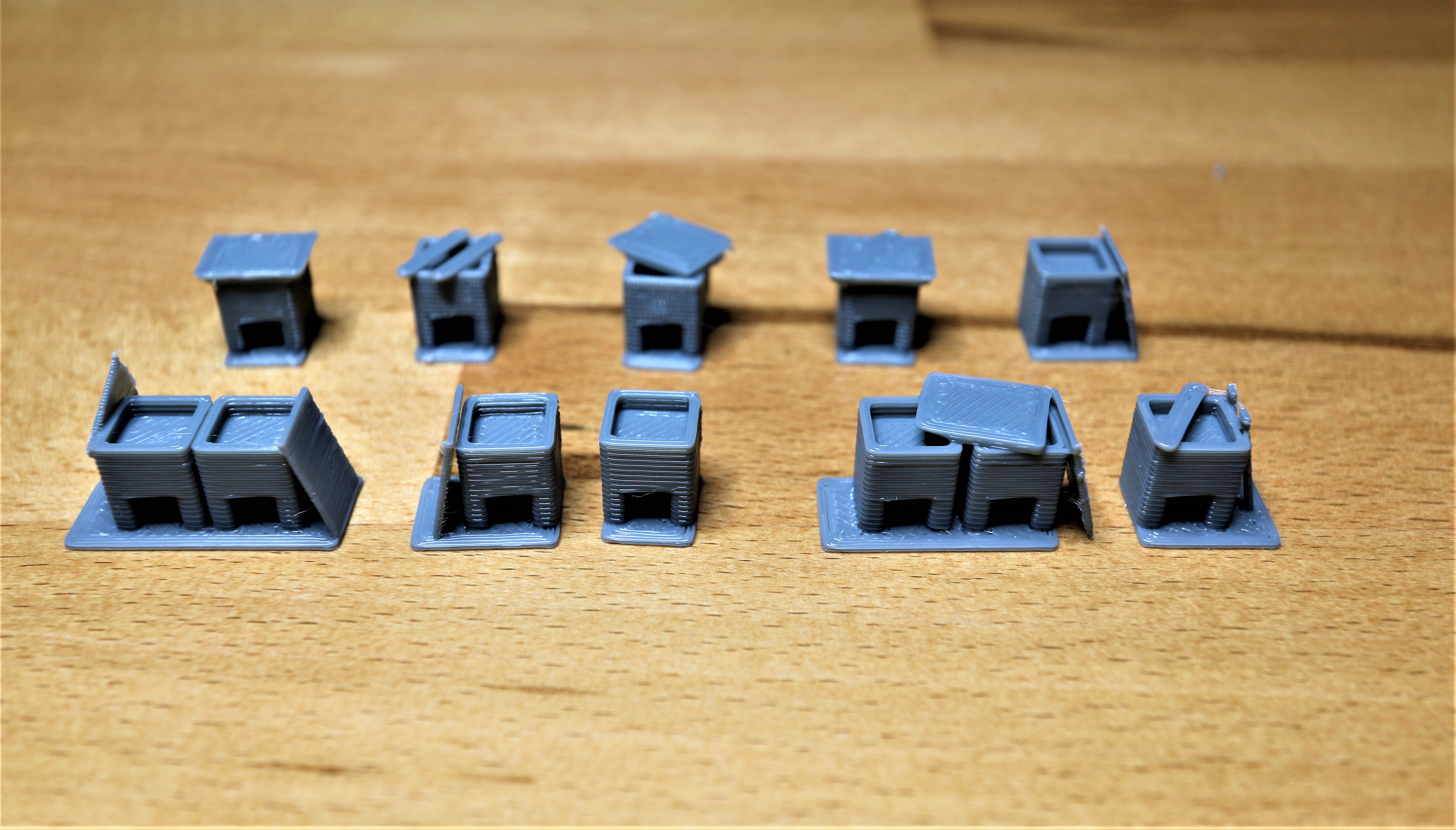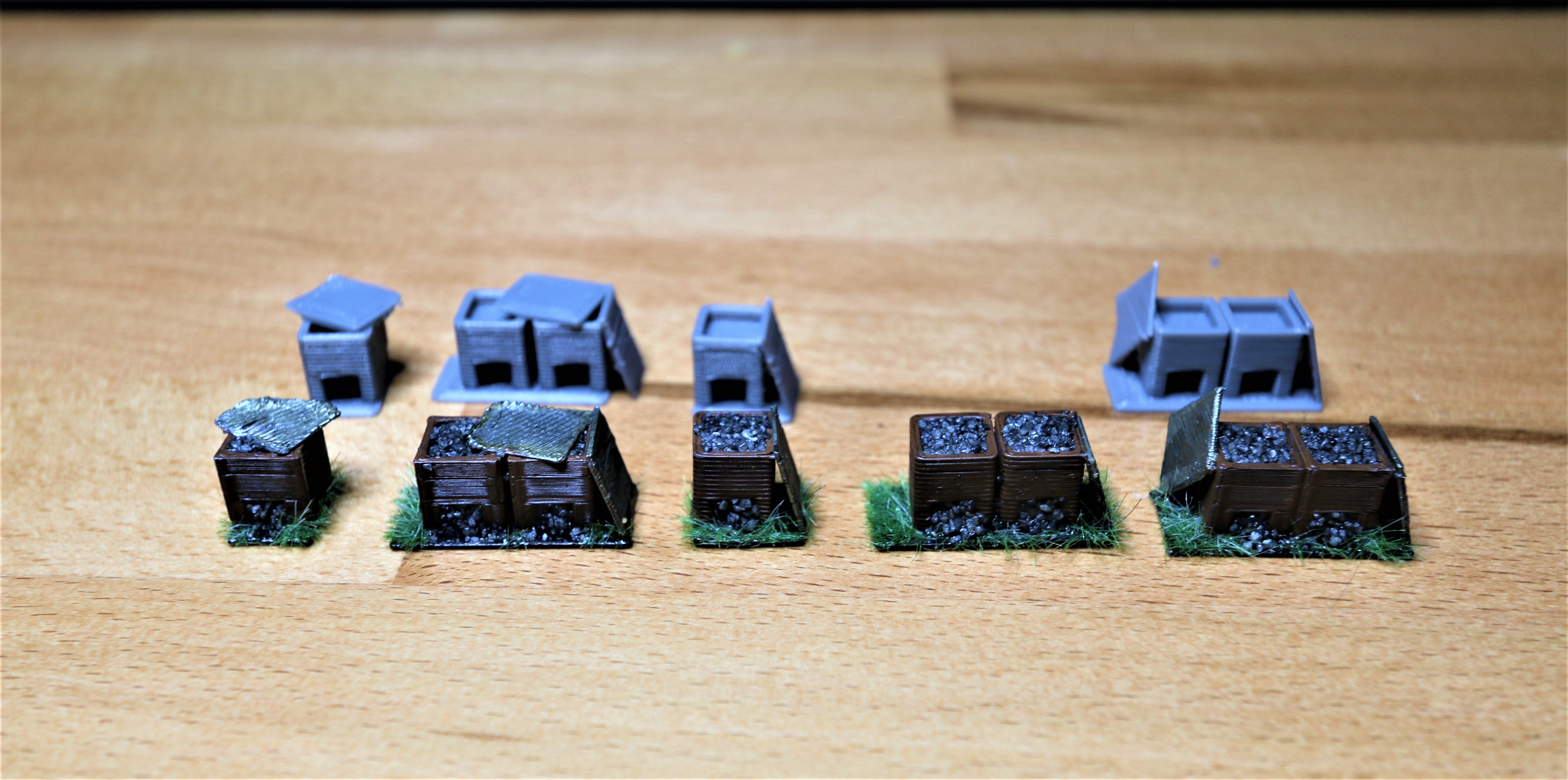 Το σετ περιλαμβάνει μια επιλογή από 10 διαφορετικά σχέδια, τα οποία σας δίνουν μεγάλη ευελιξία στο σχεδιασμό του μοντελιστικού σας σύμπαντος. Από κλειστά δοχεία έως κουτιά με ανοιχτά καπάκια ή στοιβαγμένες ξύλινες δοκούς – κάθε παραλλαγή συμβάλλει στην αφήγηση μιας μοναδικής ιστορίας στον μοντελιστικό σας σιδηρόδρομο. Μπορείτε να βελτιώσετε περαιτέρω την εμφάνιση των κουτιών βάφοντάς τα και προσθέτοντας ρεαλιστικό χύμα υλικό, καθιστώντας τα αναπόσπαστο μέρος του τοπίου σας.