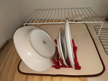 Αυτή η σχάρα πιάτων είναι μια πρακτική και εξοικονομητική λύση για το στέγνωμα των καθημερινών σας πιάτων. Η σχάρα έχει σχεδιαστεί για να συγκρατεί αποτελεσματικά μικρά πιάτα, μπολ και μαχαιροπίρουνα, συμβάλλοντας σε μια πιο οργανωμένη κουζίνα. Ως λειτουργική βάση, προάγει το φυσικό στέγνωμα στον αέρα και μπορεί εύκολα να τοποθετηθεί δίπλα στο νεροχύτη ή στον πάγκο της κουζίνας. Ο μινιμαλιστικός σχεδιασμός το καθιστά ένα διακριτικό αλλά εξαιρετικά χρήσιμο στοιχείο στην κουζίνα, που υποστηρίζει μια απρόσκοπτη διαδικασία στεγνώματος πιάτων. Για βέλτιστη σταθερότητα, συνιστάται να είστε προσεκτικοί με μεγαλύτερα ή βαρύτερα πιάτα, καθώς αυτή η σχάρα είναι κυρίως βελτιστοποιημένη για μικρότερα αντικείμενα.