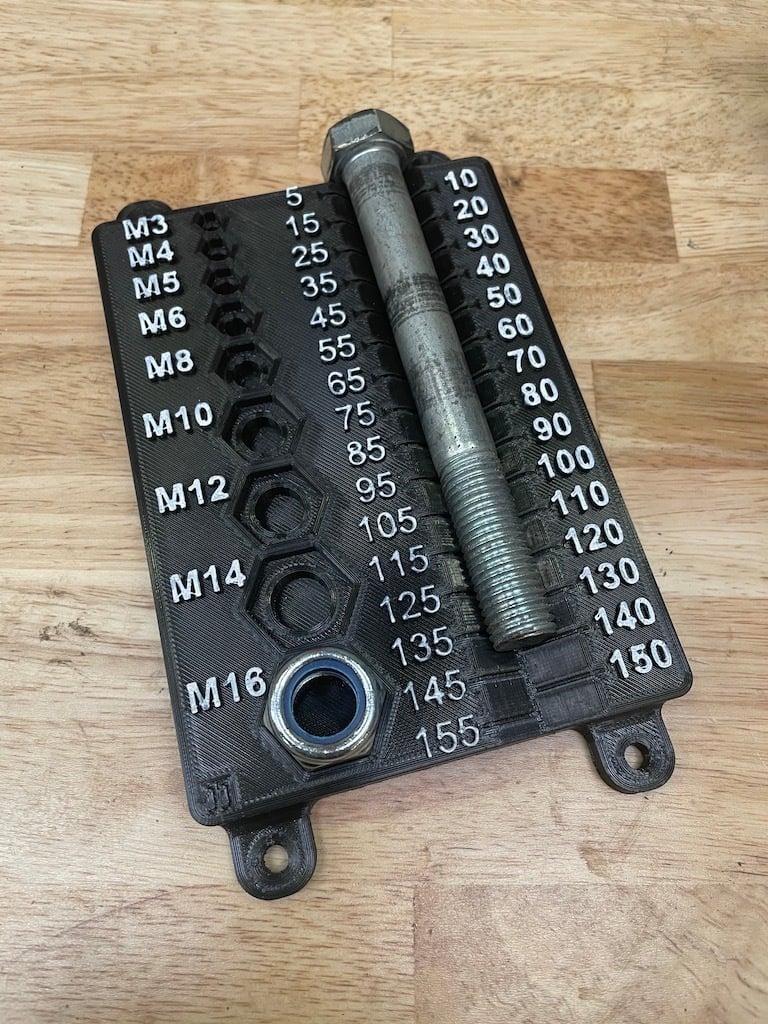 Αυτό το εργαλείο ταξινόμησης μπουλονιών έχει σχεδιαστεί για να βοηθά στην οργάνωση μπουλονιών και παξιμαδιών στο μετρικό πρότυπο. Λειτουργεί ως ένα αποτελεσματικό εργαλείο μέτρησης, επιτρέποντας τον εντοπισμό μεγεθών από M3 έως M16, καθώς και μήκη από 5 mm έως 155 mm, χωρισμένα σε διαστήματα 5 mm.