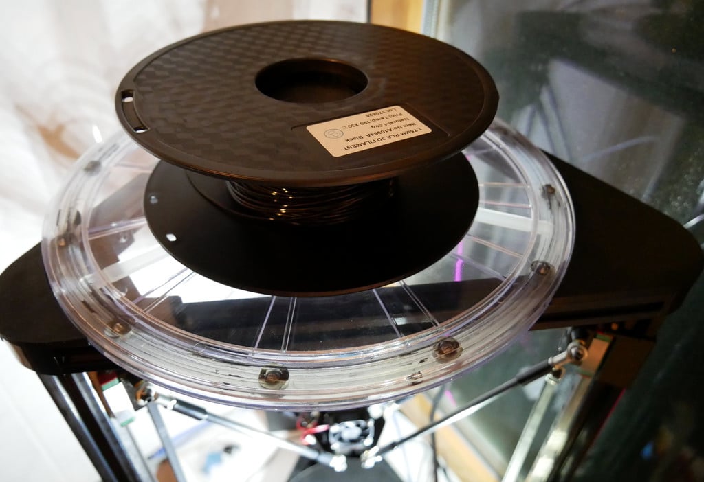 Αυτή η καινοτόμος κατασκευή διασφαλίζει ότι το ρολό του νήματός σας συγκρατείται σταθερά στη θέση του, ελαχιστοποιώντας τον κίνδυνο εμπλοκής και παρέχοντας μια πιο ομαλή τροφοδοσία του υλικού κατά την εκτύπωση. Χρησιμοποιώντας μια τυπική περιστρεφόμενη πλάκα 30 cm (12") (lazy susan), απελευθερώνεται πολύτιμος χώρος γύρω από τον εκτυπωτή σας, δημιουργώντας μια πιο τακτοποιημένη και αποτελεσματική ρύθμιση.