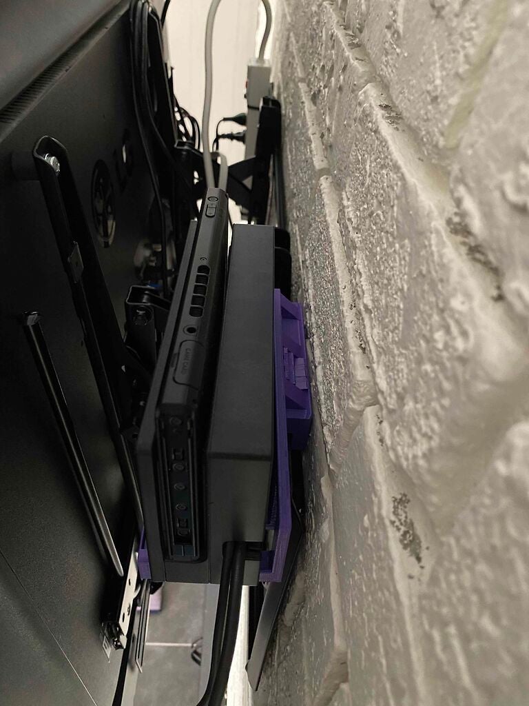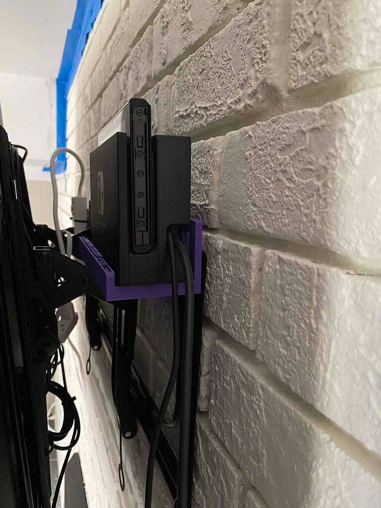 Αυτός ο προσαρμογέας έχει αναπτυχθεί για να επιτρέψει την τοποθέτηση του Nintendo Switch απευθείας στην υπάρχουσα βάση στήριξης τηλεόρασης στον τοίχο. Χρησιμοποιεί τον συχνά αχρησιμοποίητο χώρο που είναι συνήθως διαθέσιμος γύρω από μια τηλεόραση τοποθετημένη στον τοίχο, συμβάλλοντας σε μια πιο οργανωμένη περιοχή ψυχαγωγίας. Ο προσαρμογέας είναι συμβατός με βάσεις στήριξης τηλεόρασης που χρησιμοποιούν σύστημα γάντζου και παρέχει μια σταθερή και διακριτική τοποθέτηση της κονσόλας Nintendo Switch. Αυτή η λύση βοηθά να διατηρηθεί ο χώρος του δαπέδου ή του ραφιού ελεύθερος, ενώ το Nintendo Switch είναι εύκολα προσβάσιμο για χρήση.