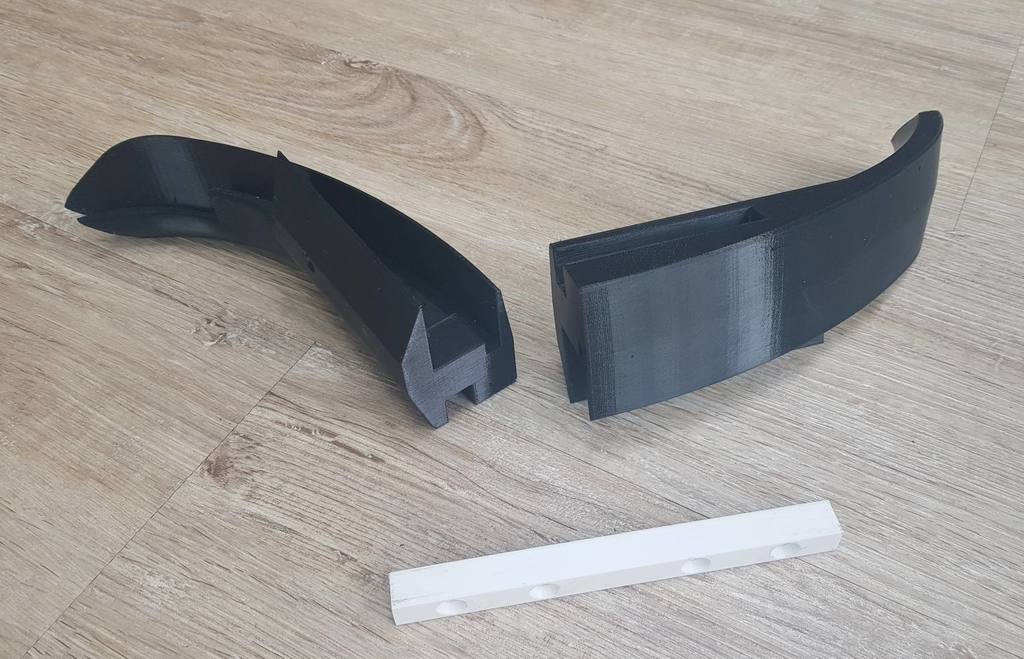 Δεδομένου ότι το bumper είναι πολύ μεγάλο για να το εκτυπώσει ο εκτυπωτής μου σε ένα κομμάτι, χωρίζεται σε μέρη και σε ένα κεντρικό κομμάτι για να ασφαλίσει τα πράγματα.