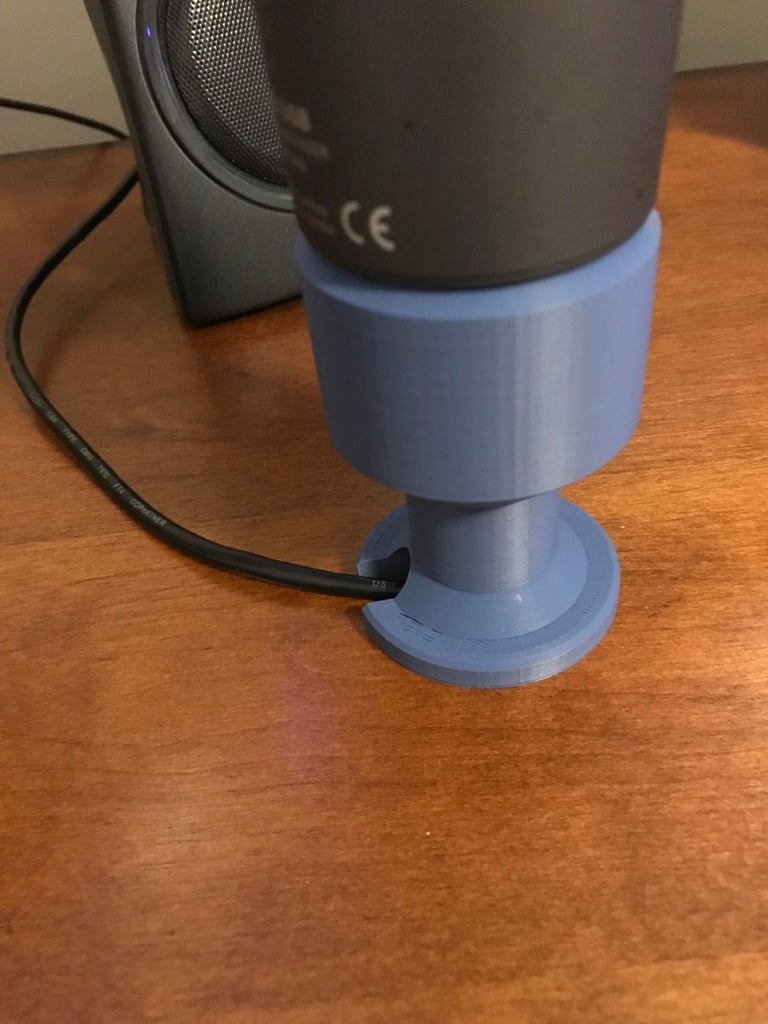 Απλή βάση μικροφώνου AT2020. Ταιριάζει όμορφα στο γραφείο και μπορεί, για παράδειγμα, να τοποθετηθεί μακριά από τα μάτια για τις οθόνες. Διαθέτει άκρη γωνίας 30°, ώστε να μην ανατρέπεται πολύ εύκολα.