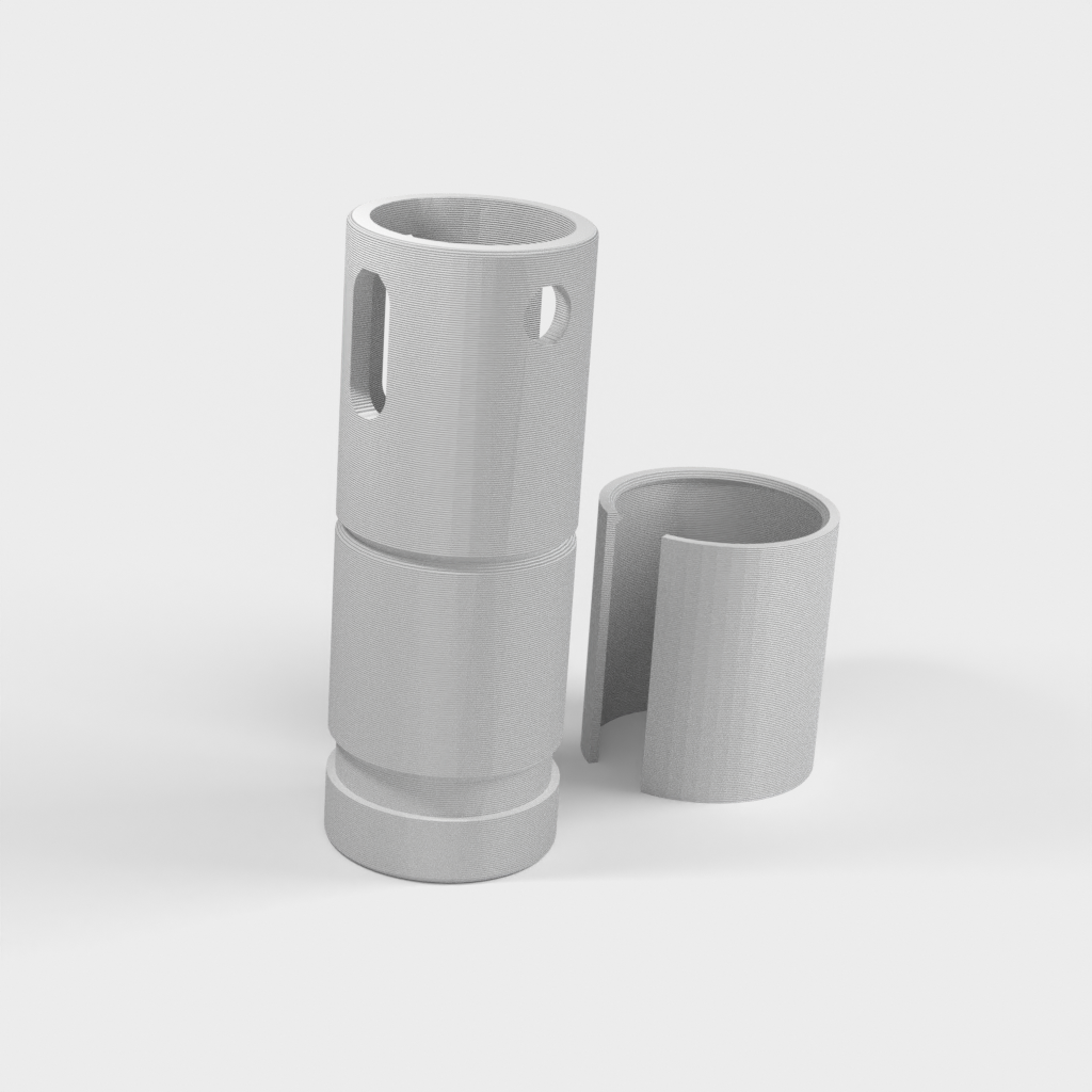 Περιλαμβάνονται 2 σχέδια. Ένα είναι ένα βασικό ακροφύσιο χωρίς ειδικές λειτουργίες, το οποίο μπορεί να χρησιμοποιηθεί ως σημείο εκκίνησης για τη δημιουργία άλλων προσαρμογέων και εργαλείων ηλεκτρικής σκούπας. Το άλλο έχει ένα περιοριστικό κλειδί (για να σταματήσει το εργαλείο να περιστρέφεται ελεύθερα), οπές εξαερισμού (για να επιτρέπεται μια μικρή ποσότητα ροής αέρα, εμποδίζοντας την ηλεκτρική σκούπα να πάλλεται καθώς αισθάνεται χαμηλή ροή αέρα) και ένα περιστρεφόμενο κάλυμμα εξαερισμού, (το οποίο σας επιτρέπει να ρυθμίσετε την ποσότητα ροής αέρα που διέρχεται)