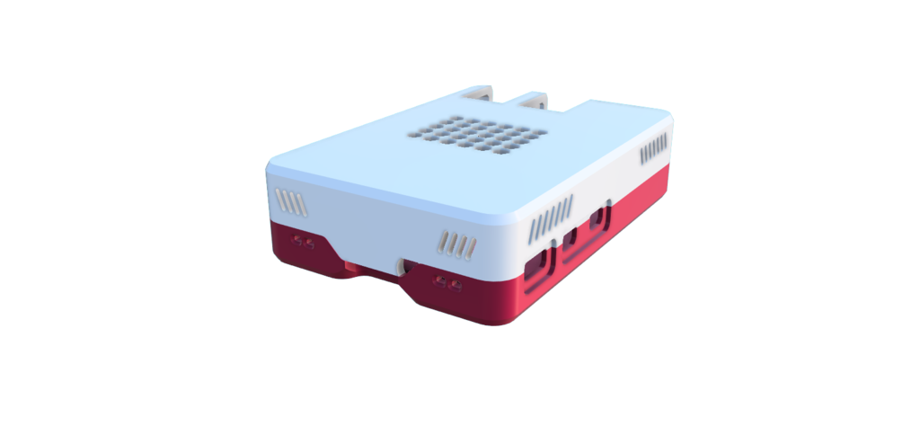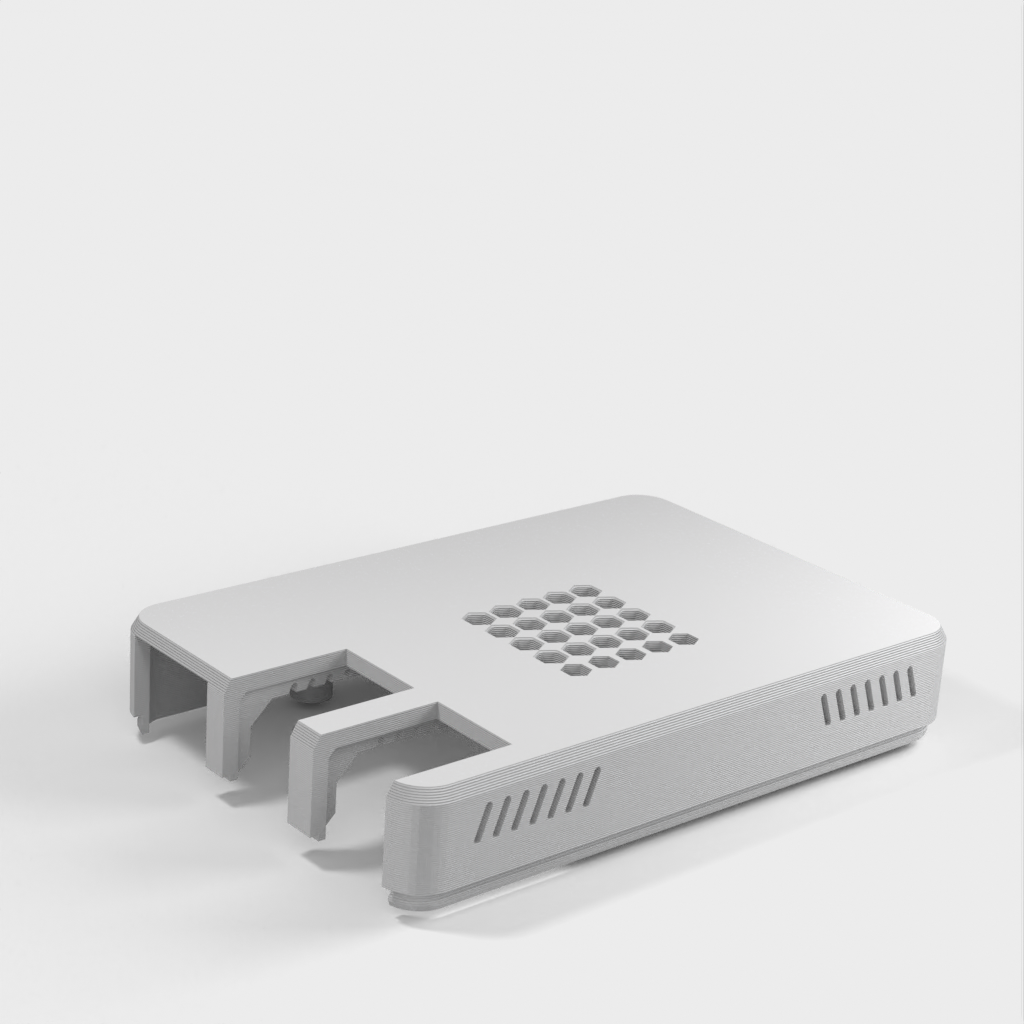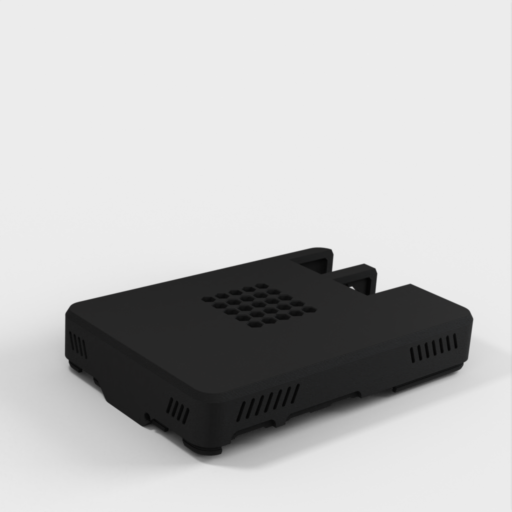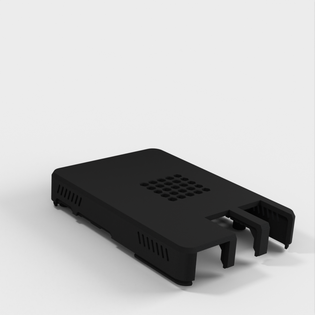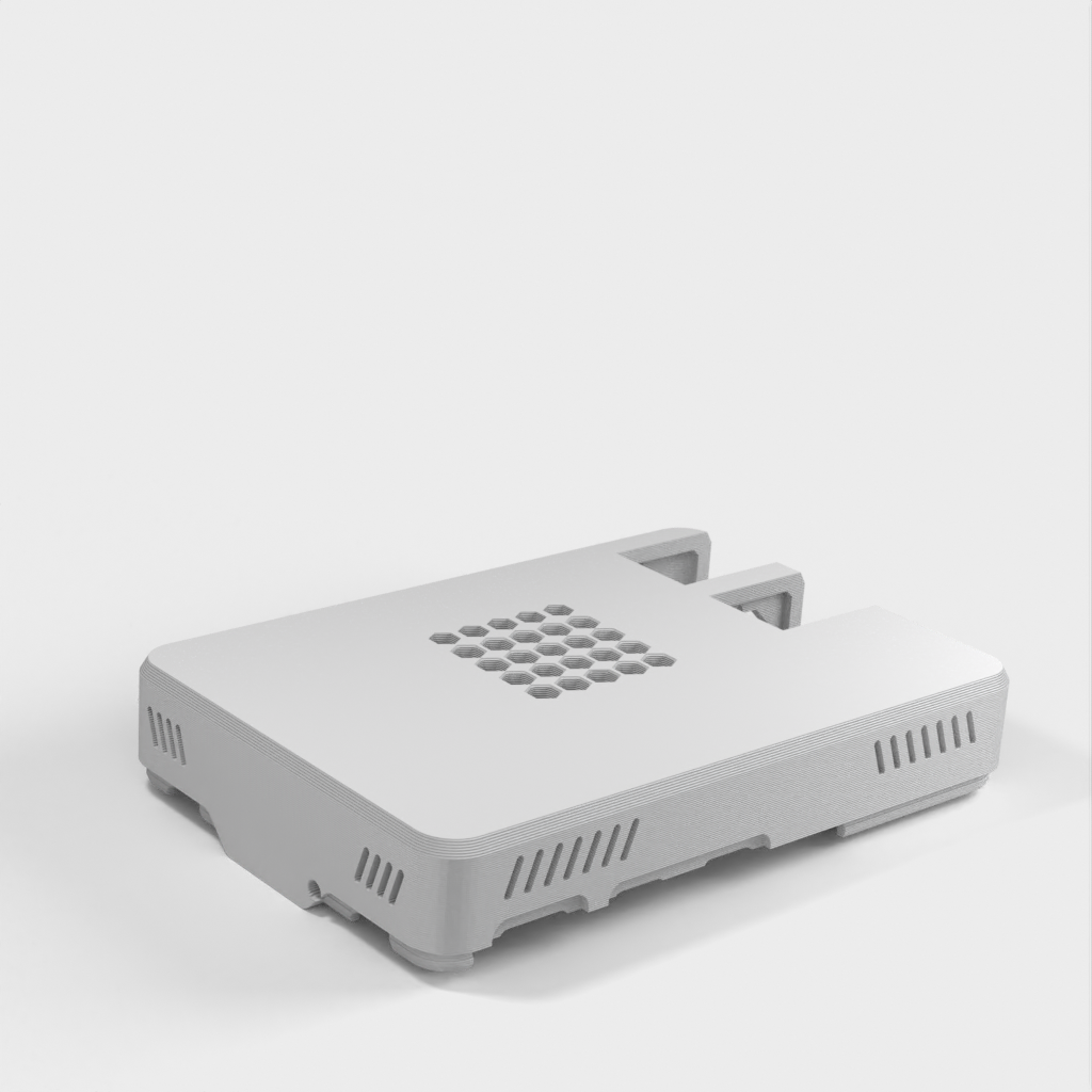 Απλό περίβλημα για το Raspberry Pi 5 από το 2023. Οι αλλαγές περιλαμβάνουν την επανατοποθέτηση των υποδοχών USB και LAN, την αφαίρεση της υποδοχής ακουστικών και την προσθήκη ενός μικρού ανοίγματος για το κουμπί επαναφοράς. Έχουν προστεθεί οπές εξαερισμού για να ταιριάζει το αρχικό ψυγείο.