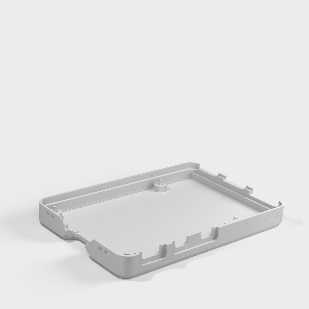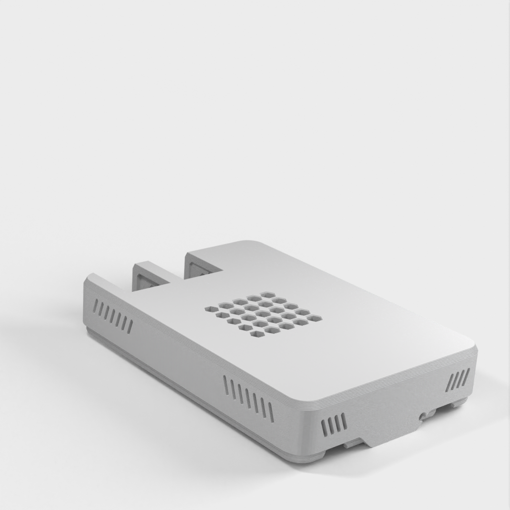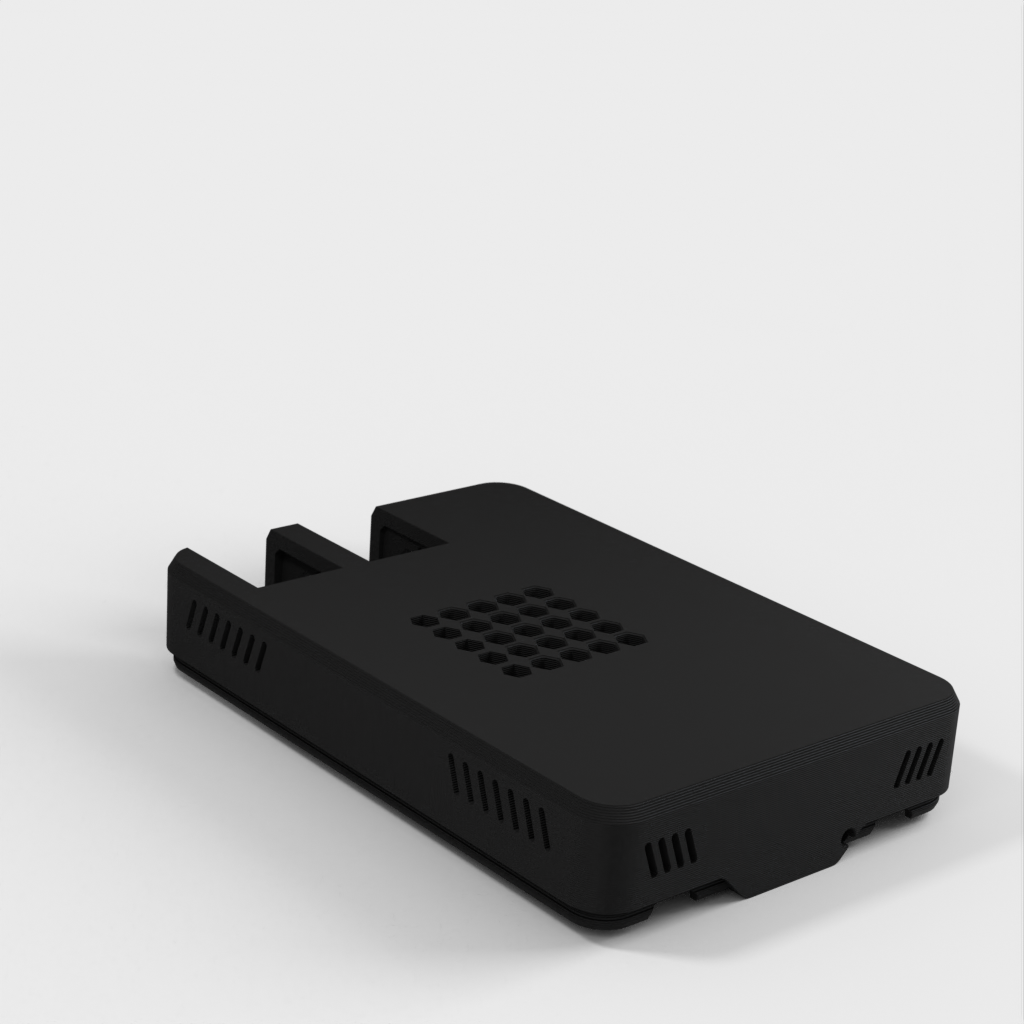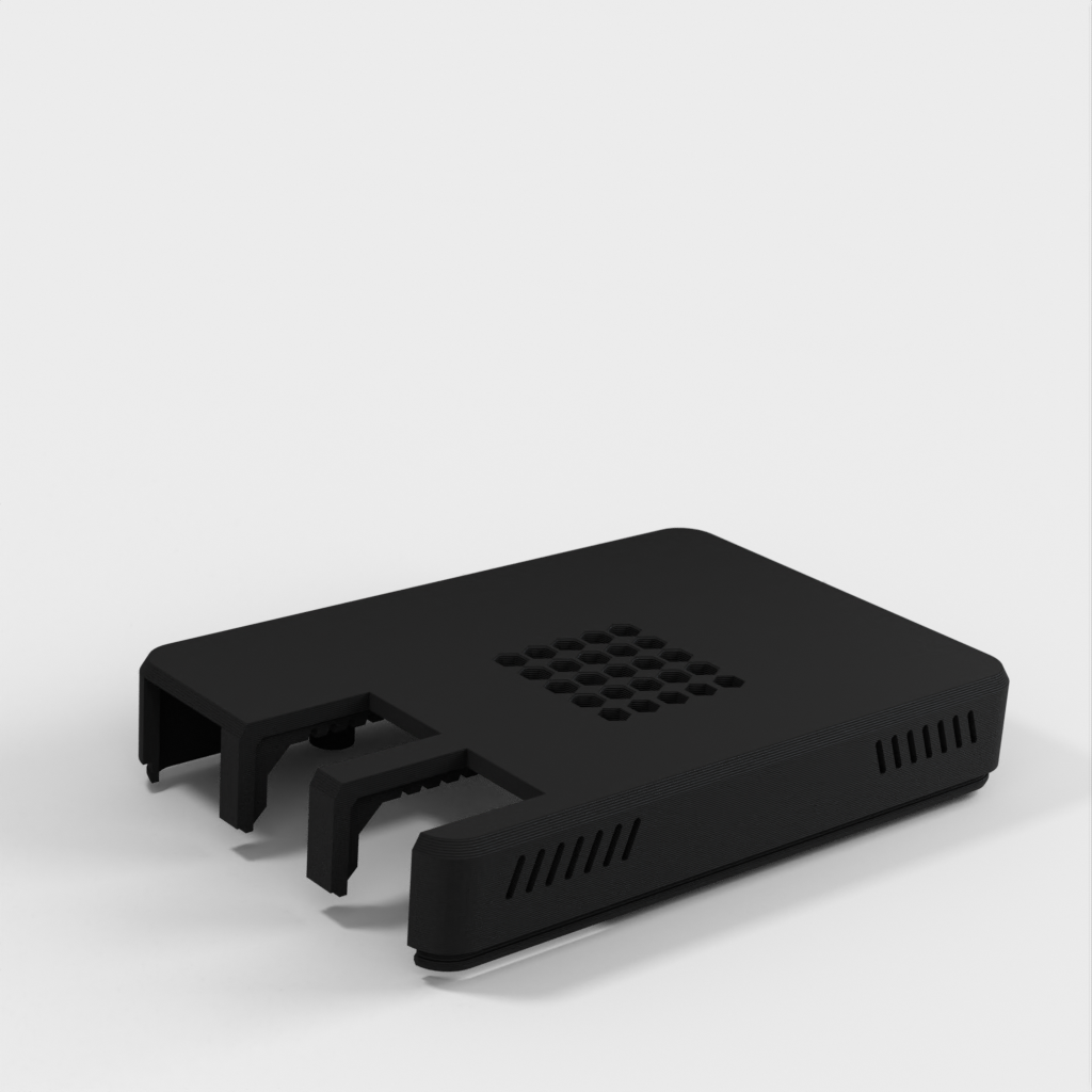 Απλό περίβλημα για το Raspberry Pi 5 από το 2023. Οι αλλαγές περιλαμβάνουν την επανατοποθέτηση των υποδοχών USB και LAN, την αφαίρεση της υποδοχής ακουστικών και την προσθήκη ενός μικρού ανοίγματος για το κουμπί επαναφοράς. Έχουν προστεθεί οπές εξαερισμού για να ταιριάζει το αρχικό ψυγείο.