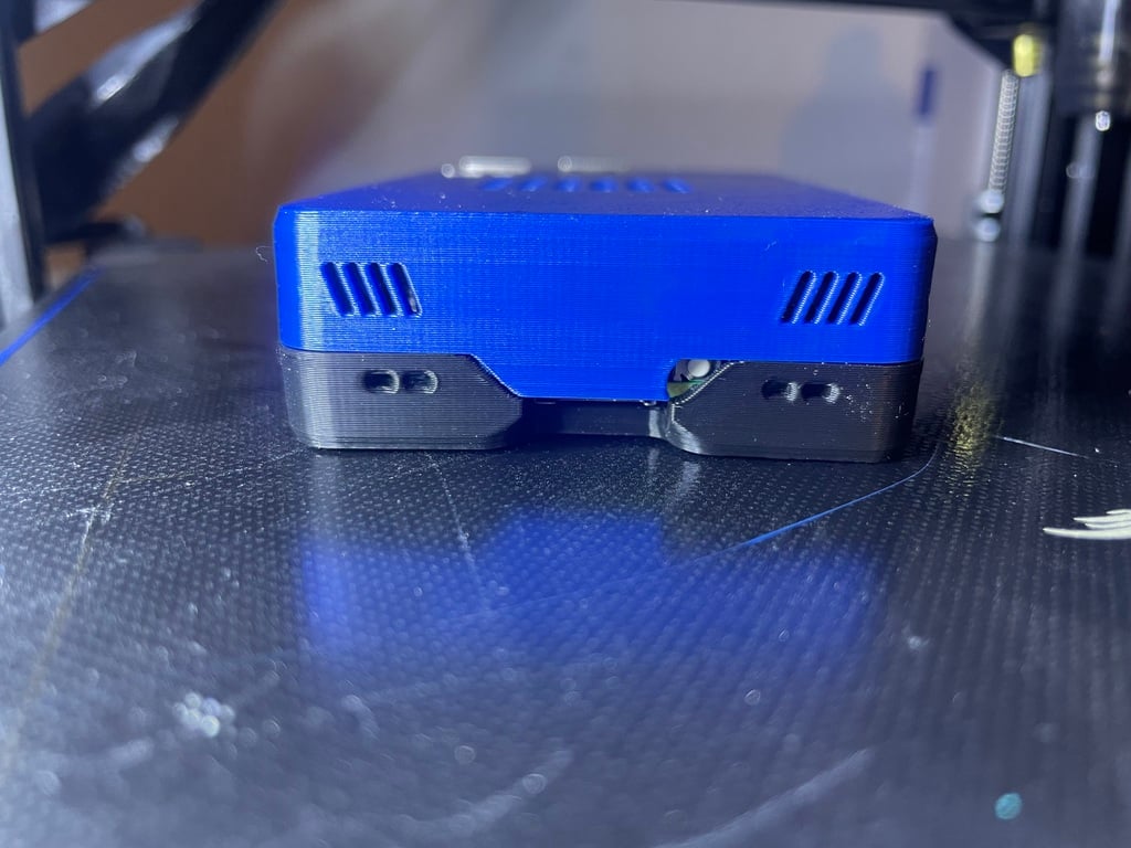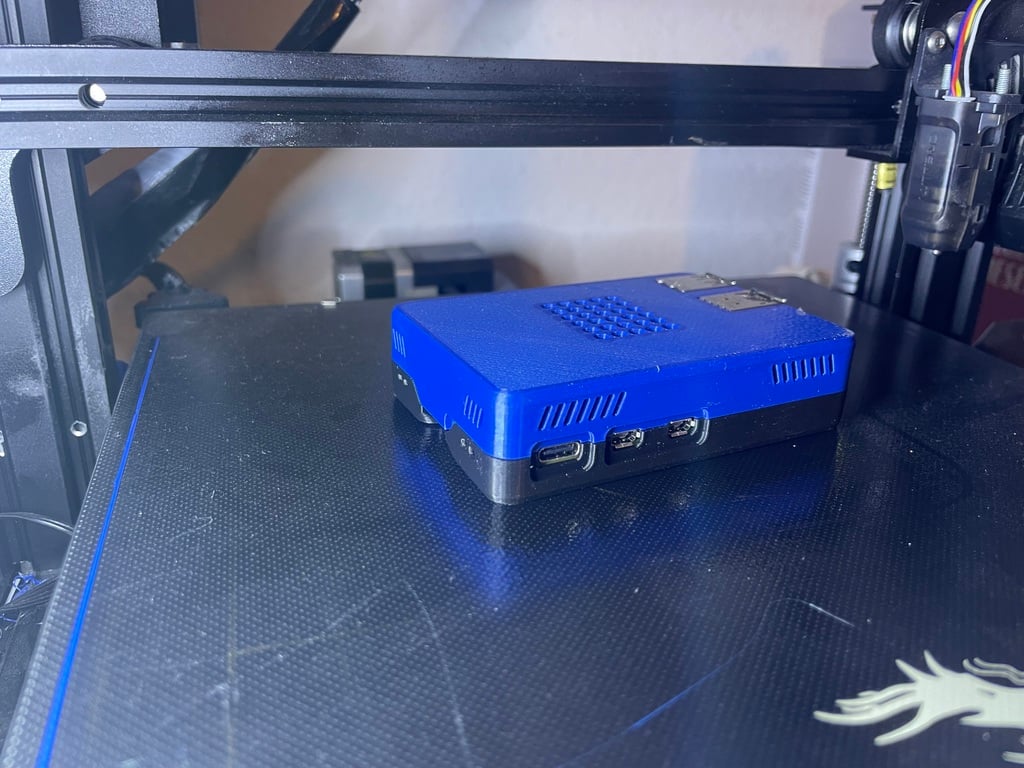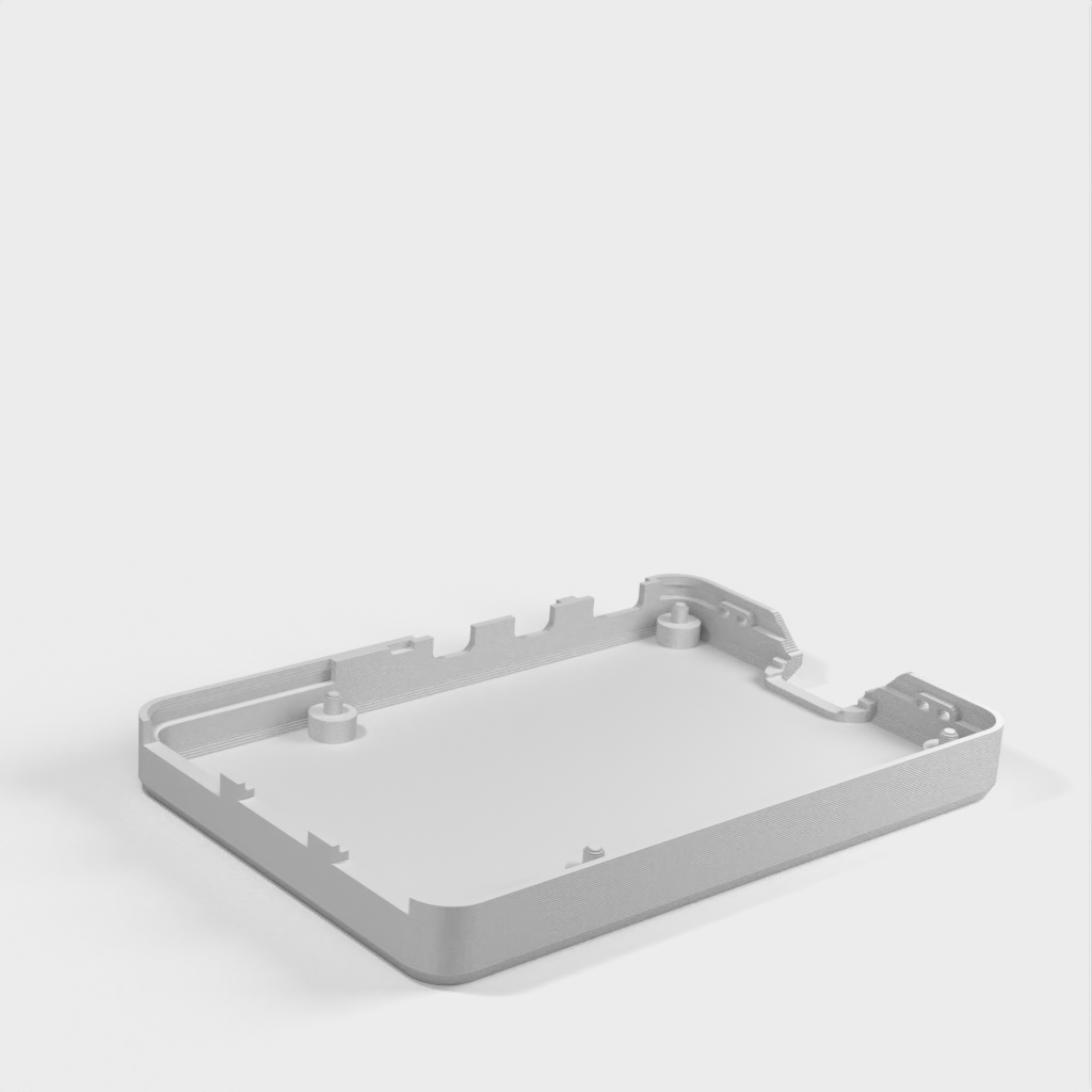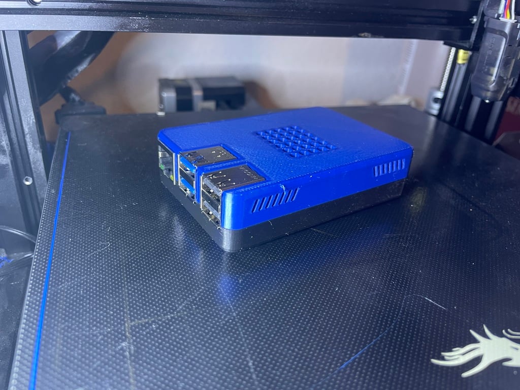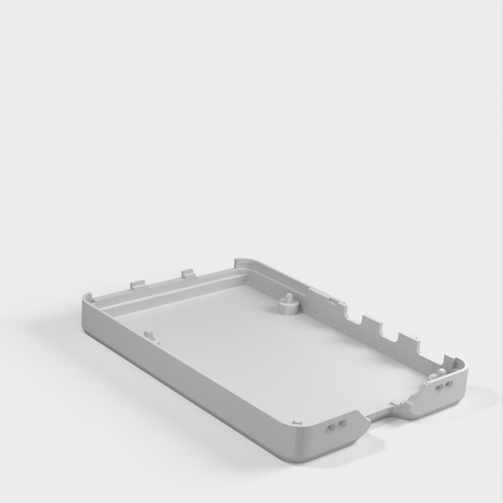 Απλό περίβλημα για το Raspberry Pi 5 από το 2023. Οι αλλαγές περιλαμβάνουν την επανατοποθέτηση των υποδοχών USB και LAN, την αφαίρεση της υποδοχής ακουστικών και την προσθήκη ενός μικρού ανοίγματος για το κουμπί επαναφοράς. Έχουν προστεθεί οπές εξαερισμού για να ταιριάζει το αρχικό ψυγείο.