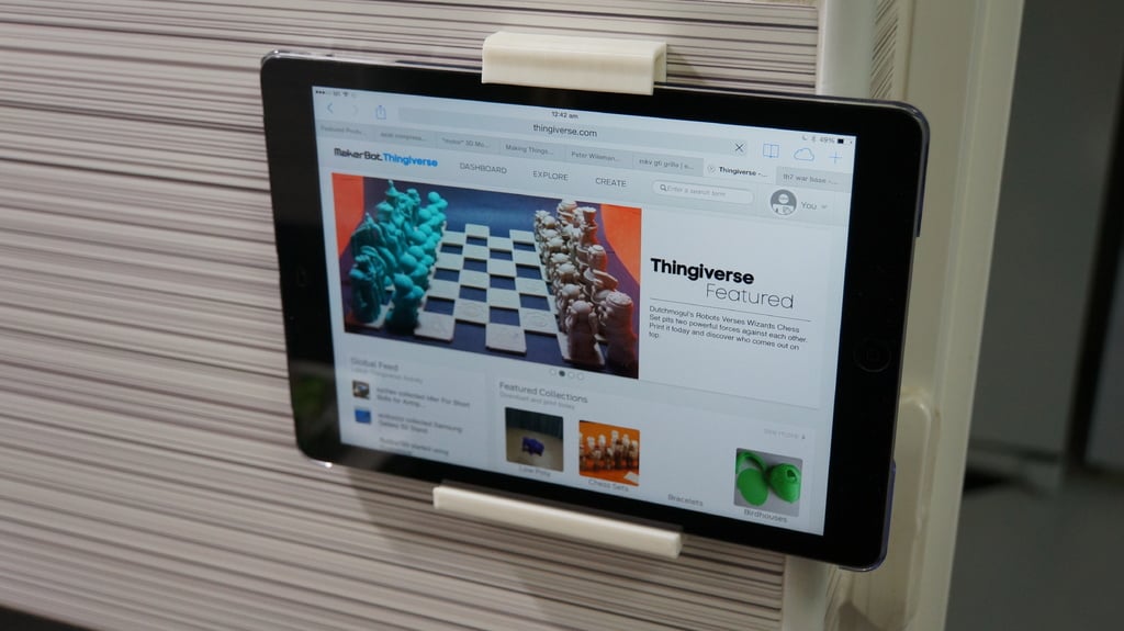 Μινιμαλιστικό ράφι τοποθετημένο στον τοίχο και επάνω σφιγκτήρας για iPad/tablet. Αυτό το ράφι είναι συμβατό με iPad 3, 4 και Air, με ή χωρίς πίσω κάλυμμα. Έχει σχεδιαστεί για εύκολη εγκατάσταση στον τοίχο χρησιμοποιώντας ταινία στερέωσης 3M. Ιδανικό για να διατηρείτε το iPad ή το tablet σας οργανωμένο και προσβάσιμο με κομψό τρόπο.
