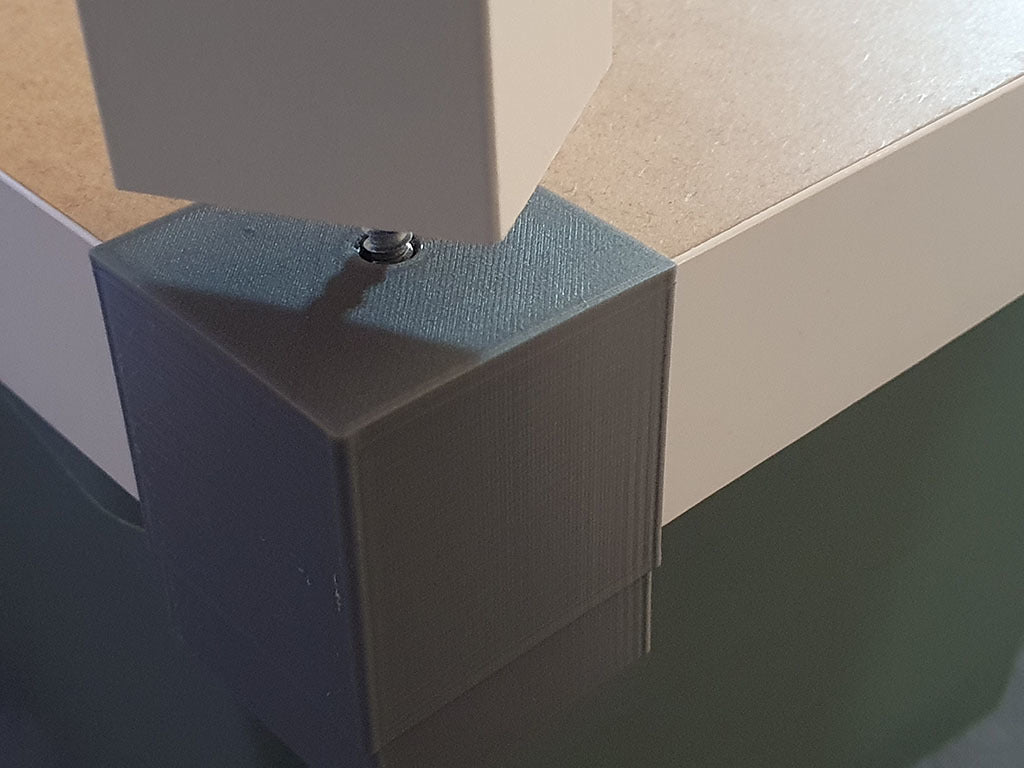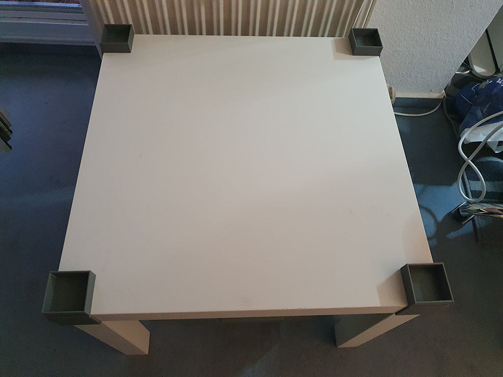 Θήκη για τα πόδια του τραπεζιού για το τραπέζι IKEA LACK. Αυτή η θήκη ταιριάζει ακριβώς στην άκρη του τραπεζιού LACK και βιδώνεται στην επιφάνεια του τραπεζιού με τα πόδια του τραπεζιού. Αυτή είναι μια ιδανική λύση για να σηκώσετε το τραπέζι σας IKEA LACK και να το κάνετε πιο κατάλληλο για εργασία με τρισδιάστατους εκτυπωτές ή για άλλους σκοπούς. Η θήκη θα πρέπει να ταιριάζει σε όλα τα τραπέζια LACK από την IKEA, ώστε να μπορείτε να δημιουργήσετε ένα ράφι ή μια βάση για τον εκτυπωτή σας ή οτιδήποτε άλλο από όλα τα πιθανά τραπέζια της σειράς LACK.