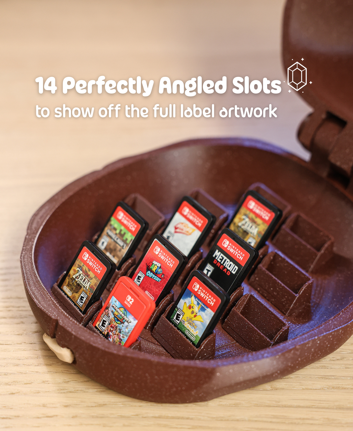 Αυτή η θήκη Rupee είναι μια μοναδική λύση αποθήκευσης για τα παιχνίδια σας Nintendo Switch και Switch 2. Παρέχει χώρο για 14 παιχνίδια και έχει σχεδιαστεί με μια εμφάνιση εμπνευσμένη από περιπέτεια που μοιάζει με μια τσάντα γεμάτη ρουμπίνια. Η θήκη οργανώνει αποτελεσματικά τις κασέτες σας και εξασφαλίζει ότι η τέχνη της ετικέτας τους προβάλλεται καθαρά.