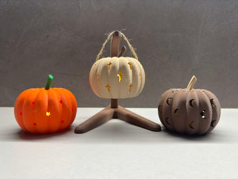 Οι κολοκύθες είναι εύκολες στην κατασκευή με εκτυπωτή 3D, και θα μπορείτε χωρίς προβλήματα να αφαιρέσετε τυχόν υποστηρικτικές δομές χάρη στο καλά μελετημένο σχέδιο. Διατίθενται σε πολλές αποχρώσεις και υλικά, όπως μπεζ, καφέ, πράσινο και πορτοκαλί PLA, καθώς και πράσινο PETG-HF, που σας επιτρέπει να προσαρμόσετε τη διακόσμησή σας ώστε να ταιριάζει με το στυλ σας.