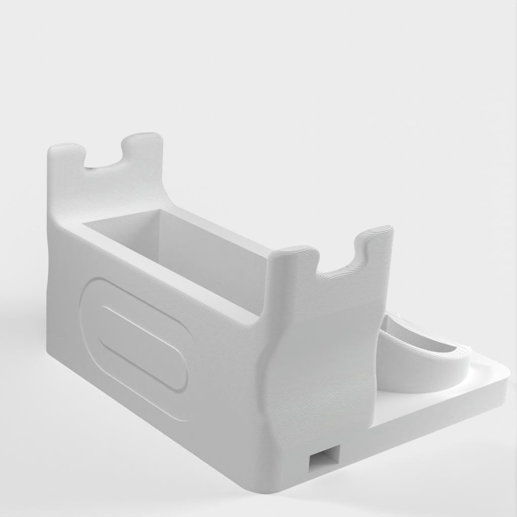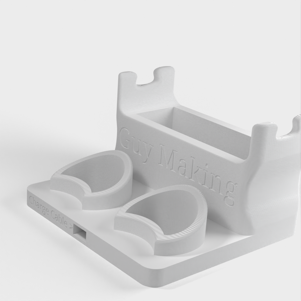 Αυτό είναι μια βάση για ένα Oculus Quest, που παρέχει ένα σπίτι για τα ακουστικά και τα χειριστήριά σας. Διαθέτει μια τρύπα για το καλώδιο φόρτισης και ένα άνοιγμα στην κορυφή για την αποθήκευση διαφόρων αξεσουάρ.
