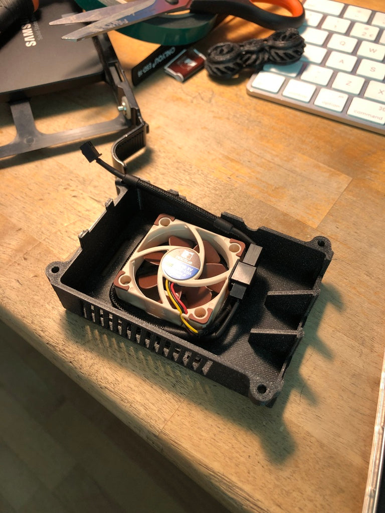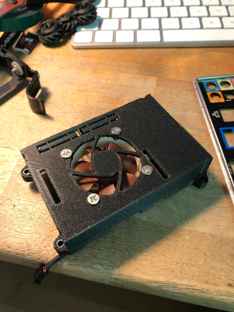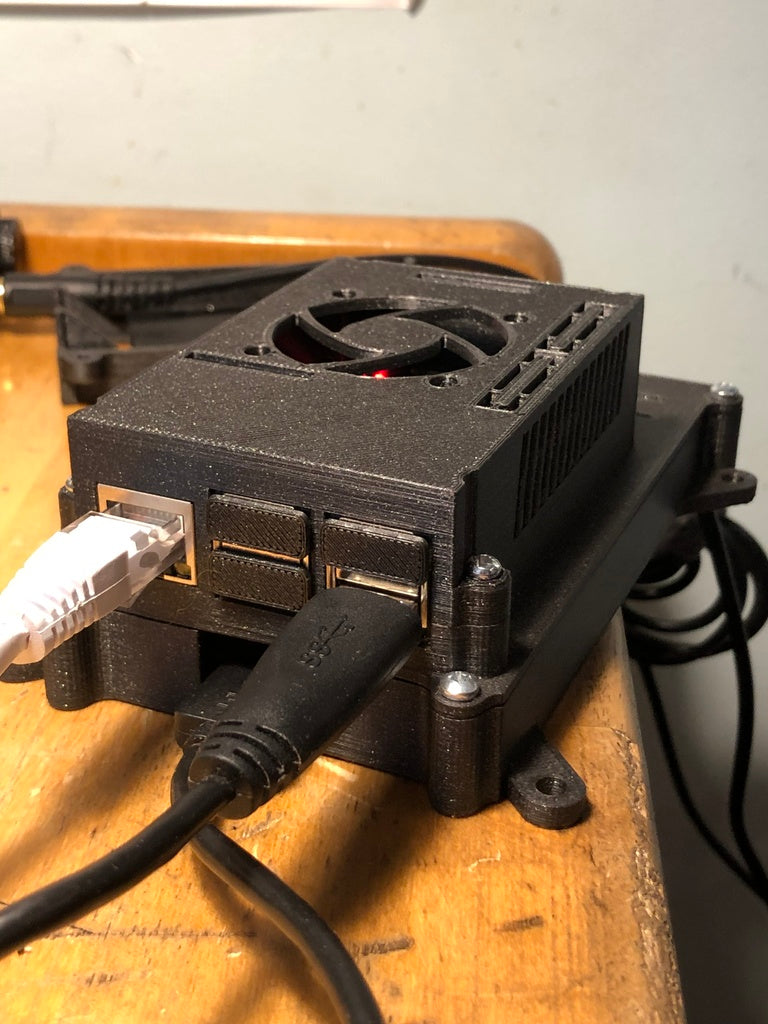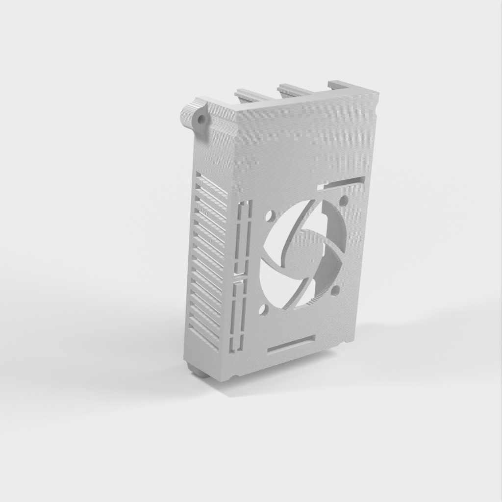 Ένα τροποποιημένο επάνω μέρος για ένα περίβλημα Raspberry Pi 3, σχεδιασμένο για να φιλοξενεί έναν ανεμιστήρα 40x40x10mm και πλευρικές εξόδους για τη βελτίωση της ψύξης του περιβλήματος. Αυτή η σχεδιαστική αλλαγή μειώνει σημαντικά τη θερμοκρασία της CPU, αυξάνοντας τη διάρκεια ζωής του Raspberry Pi, ειδικά σε περιβάλλοντα 24/7, όπως οι ρυθμίσεις NAS. Σημειώστε ότι αυτή η έκδοση δεν είναι συμβατή με το Raspberry Pi 4, καθώς έχει διαφορετική διάταξη θυρών. Η θέση του ανεμιστήρα και του θερμαντήρα σημαίνει επίσης ότι αυτή η κορυφή μπορεί να χρησιμοποιηθεί ακόμα με πλάκες θέρμανσης.