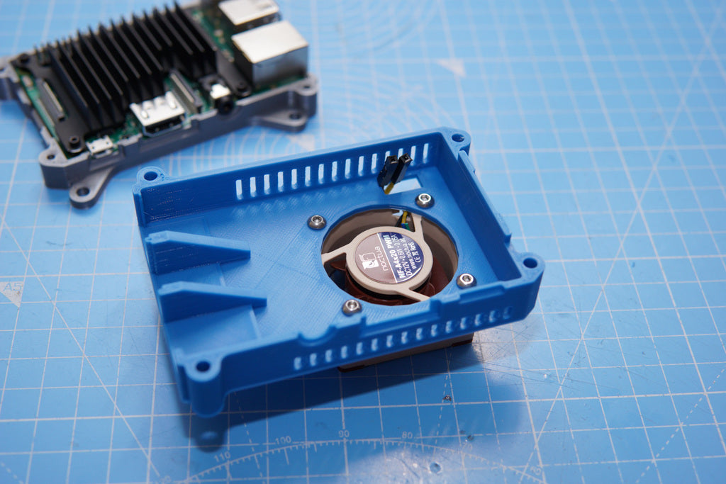 Αυτή είναι μια θήκη για το Raspberry Pi 3B με ανεμιστήρα 40mm που ταιριάζει στην ψύκτρα Kintaro. Η θήκη μειώνει τα standoffs στο κάτω μέρος, ώστε το Pi να παραμένει επίπεδο παρά τη χρήση παξιμαδιών και βιδών M2 για την τοποθέτηση της ψύκτρας. Επιπλέον, η θήκη παρέχει χώρο για έναν ανεμιστήρα 40mm και οπές εξαερισμού στην κορυφή που είναι αρκετά ψηλές ώστε να χωράνε πάνω από μια ψύκτρα. Ένας ανεμιστήρας 40mm Noctua NF A4x20 μπορεί να προστεθεί στο περίβλημα, αλλά μπορεί να χρειαστεί μια μικρή ώθηση για να ξεκινήσει όταν είναι συνδεδεμένος στα 5V μέσω της κεφαλίδας GPIO.