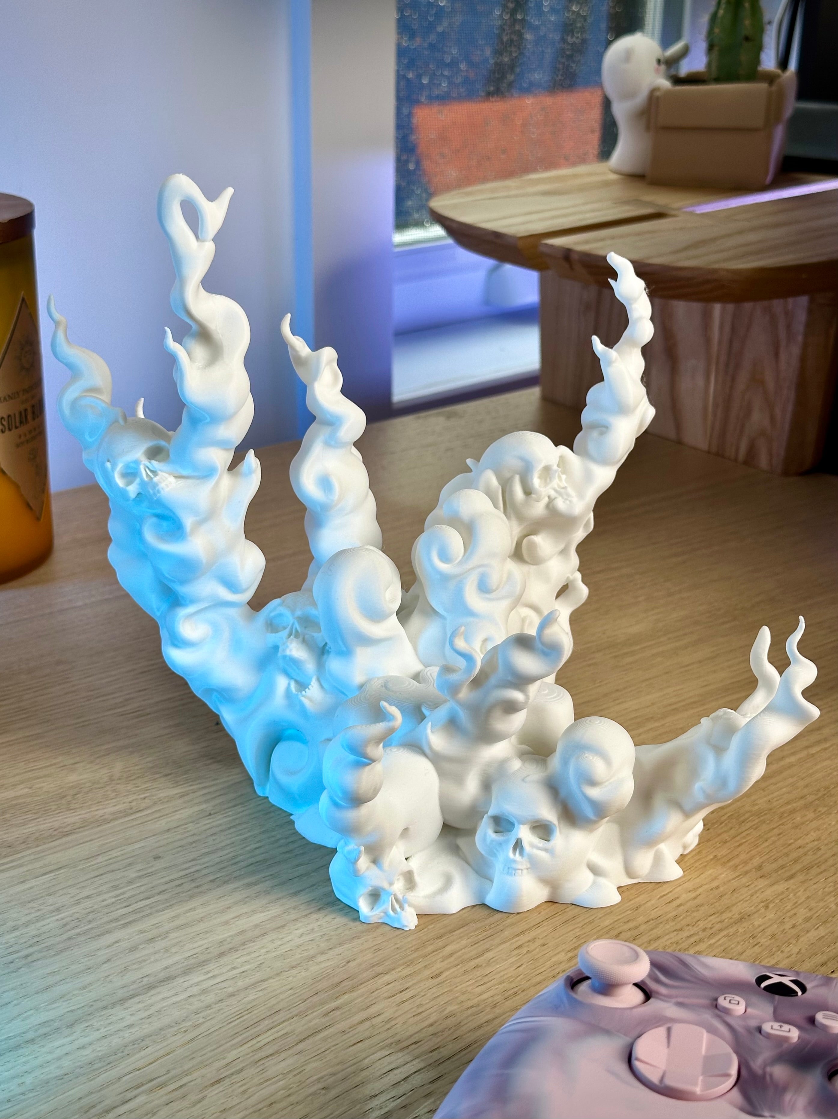 Η ανατριχιαστική βάση χειριστηρίου, σε σχήμα κρανίου με καπνό, συγκρατεί με ασφάλεια τον χειριστή του παιχνιδιού σας. Είναι συμβατή με χειριστήρια PS5, PS4, Xbox και Switch. Προσθέτει ένα φανταστικό στοιχείο φαντασίας στο στήσιμο του παιχνιδιού σας.