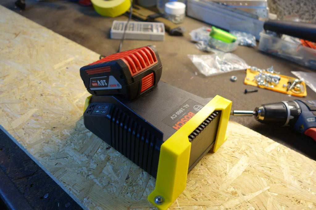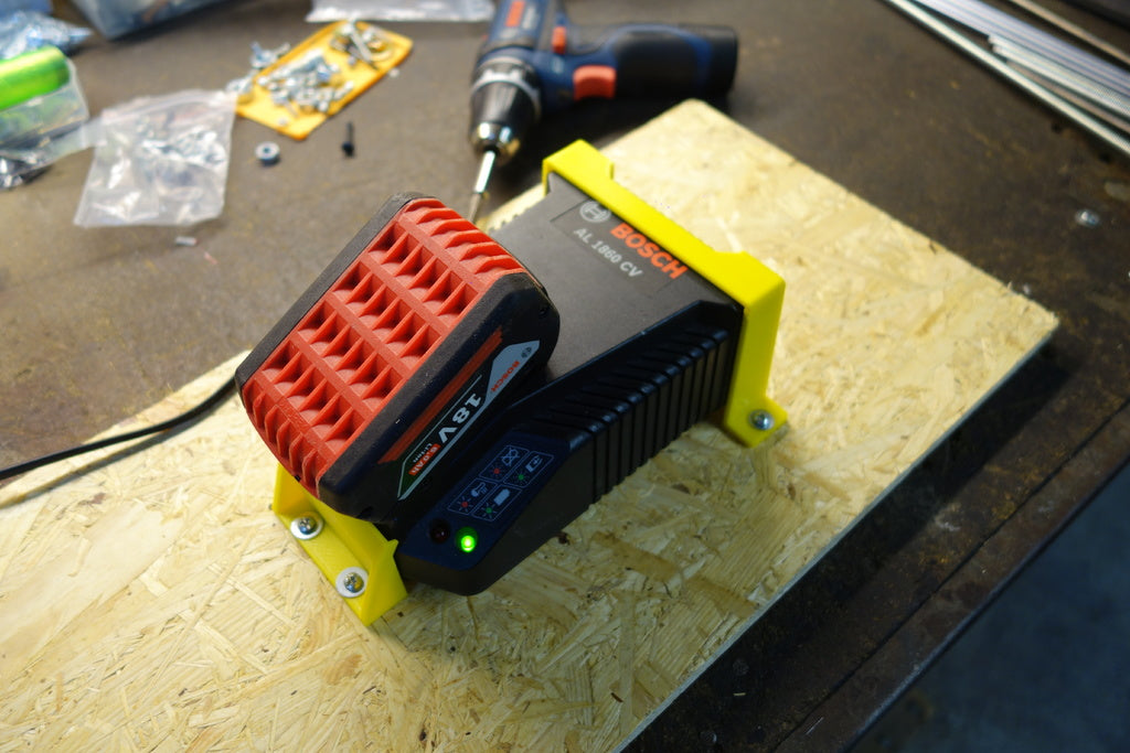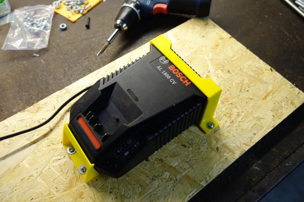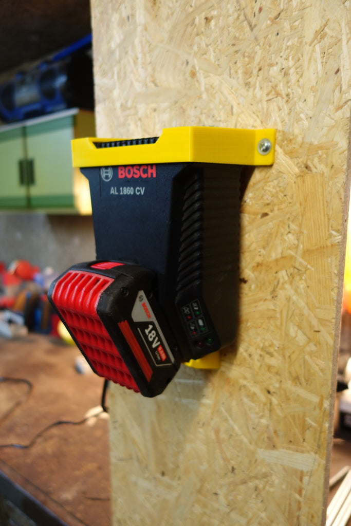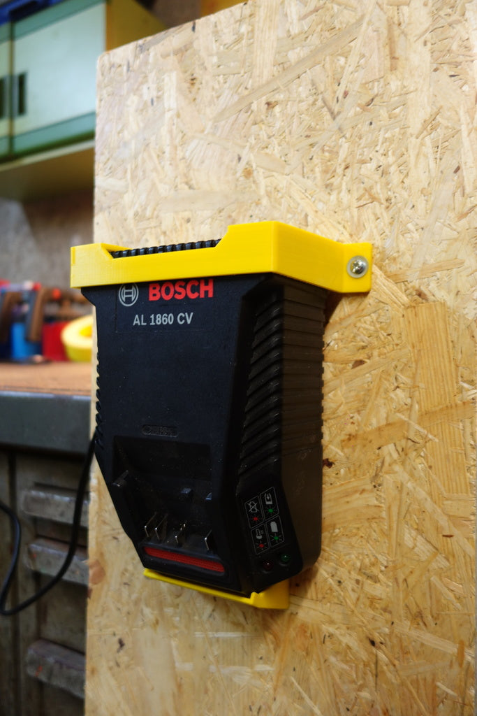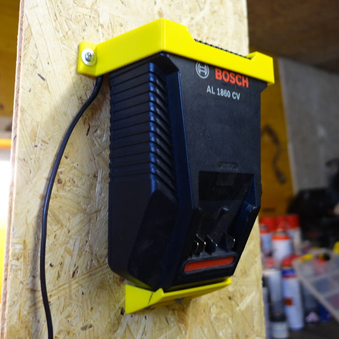 Αυτό το στήριγμα τοίχου έχει σχεδιαστεί για τον φορτιστή μου Bosch AL 1860 CV (BC 630 US-Version) ώστε να μπορώ να τοποθετήσω τον φορτιστή μου σε τοίχο. Αυτό σημαίνει ότι καταλαμβάνει λιγότερο χώρο στο γραφείο μου.