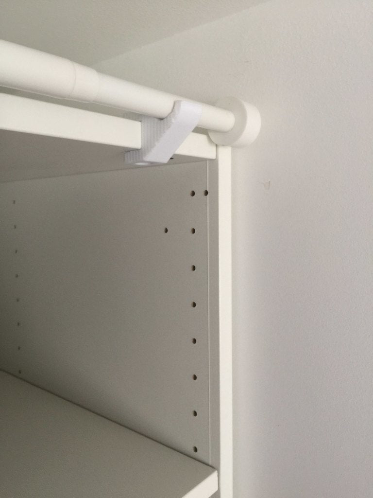 Αυτό είναι ένα στήριγμα κουρτινόξυλου χωρίς τρύπημα. Είναι σχεδιασμένο για να ταιριάζει στο πάχος ενός ντουλαπιού IKEA και επιτρέπει την εύκολη τοποθέτηση του κουρτινόξυλου σας χωρίς τη χρήση βιδών. Ταιριάζει σε ντουλάπια πάχους 18mm, αλλά έχει προστεθεί και λίμα για ντουλάπια πάχους 15mm.