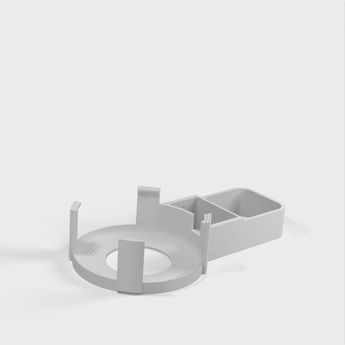 Περιγραφή της επιτοίχιας βάσης στήριξης του Amazon Echo Dot (3ης γενιάς). Αυτό το στήριγμα έχει σχεδιαστεί για να στερεώνει το Echo Dot σας απευθείας στην πρίζα τοίχου, βοηθώντας στην απόκρυψη του καλωδίου και στην εξοικονόμηση χώρου. Η βάση έχει σχεδιαστεί ώστε να μην εμποδίζει τα ηχεία του Echo Dot σας, εξασφαλίζοντας βέλτιστη εμπειρία ήχου. Εκτός από το στήριγμα Echo Dot, το σετ περιλαμβάνει ένα κάτω μέρος που ολισθαίνει στην κάτω πλευρά του τροφοδοτικού και παρέχει χώρο για την περιτύλιξη του καλωδίου γύρω από έναν κεντρικό 'πυρήνα', ένα πάνω μέρος που ολισθαίνει πάνω από την κορυφή του τροφοδοτικού και κουμπώνει πάνω στο κάτω μέρος, καθώς και ένα κάλυμμα για να καλύψει την περιοχή όπου το καλώδιο εισέρχεται στο Echo Dot.