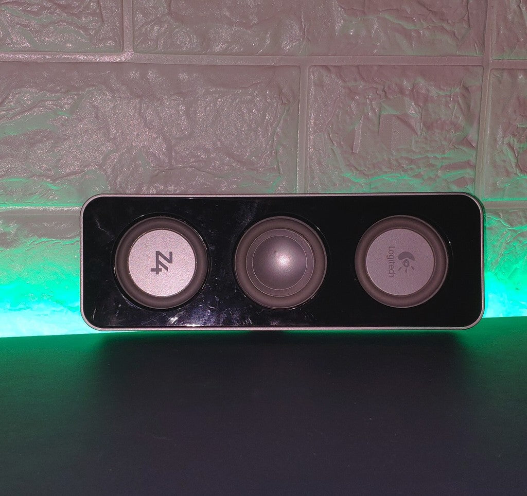 Αυτή είναι μια βάση για ηχεία Logitech Z4 που έχει σχεδιαστεί για να κρύβει όλες τις συνδέσεις καλωδίων και μπορεί να τοποθετηθεί απευθείας σε ένα γραφείο Ikea Bekant. Η θήκη έχει γωνία 15 μοιρών για να κατευθύνει καλύτερα τον ήχο προς τον χρήστη.