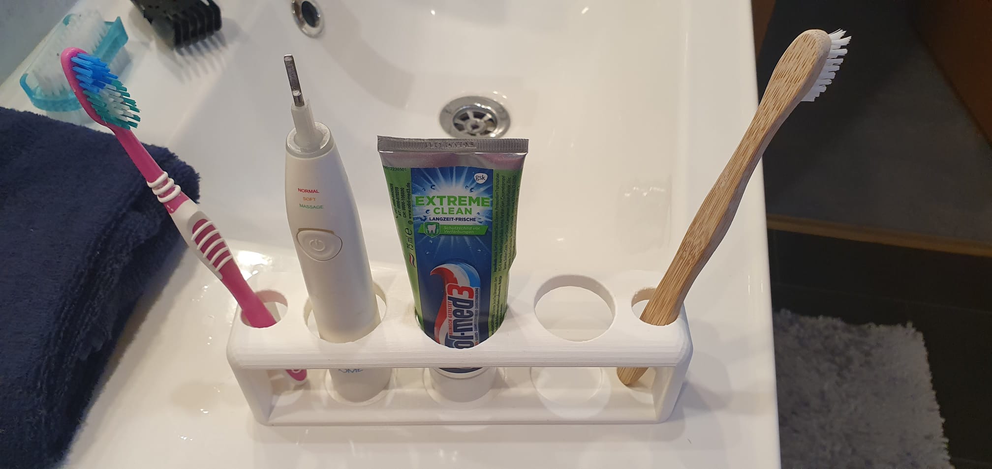 Βάση οδοντόβουρτσας για 2 κανονικές και 2 ηλεκτρικές οδοντόβουρτσες με χώρο για οδοντόκρεμα
