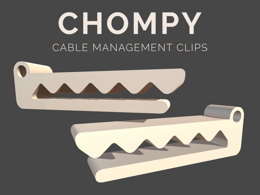 Η έκδοση 3 του Chompy έχει βελτιστοποιηθεί με ένα ελαφρώς διευρυμένο άνοιγμα, καθιστώντας την ιδιαίτερα κατάλληλη για το χειρισμό καλωδίων μεσαίου και τυπικού μεγέθους. Αυτό εξασφαλίζει εύκολη και αβίαστη εισαγωγή και αφαίρεση καλωδίων ανάλογα με τις ανάγκες. Το κλιπ μπορεί εύκολα να στερεωθεί χρησιμοποιώντας ταινία διπλής όψης για μια γρήγορη και ευέλικτη λύση. Για όσους επιθυμούν μια πιο μόνιμη τοποθέτηση, υπάρχει επίσης η δυνατότητα τροποποίησης της σχεδίασης για χρήση με βίδες.