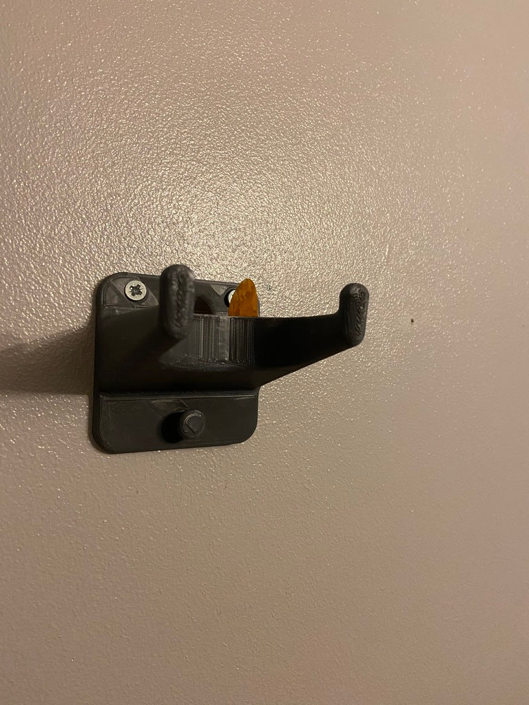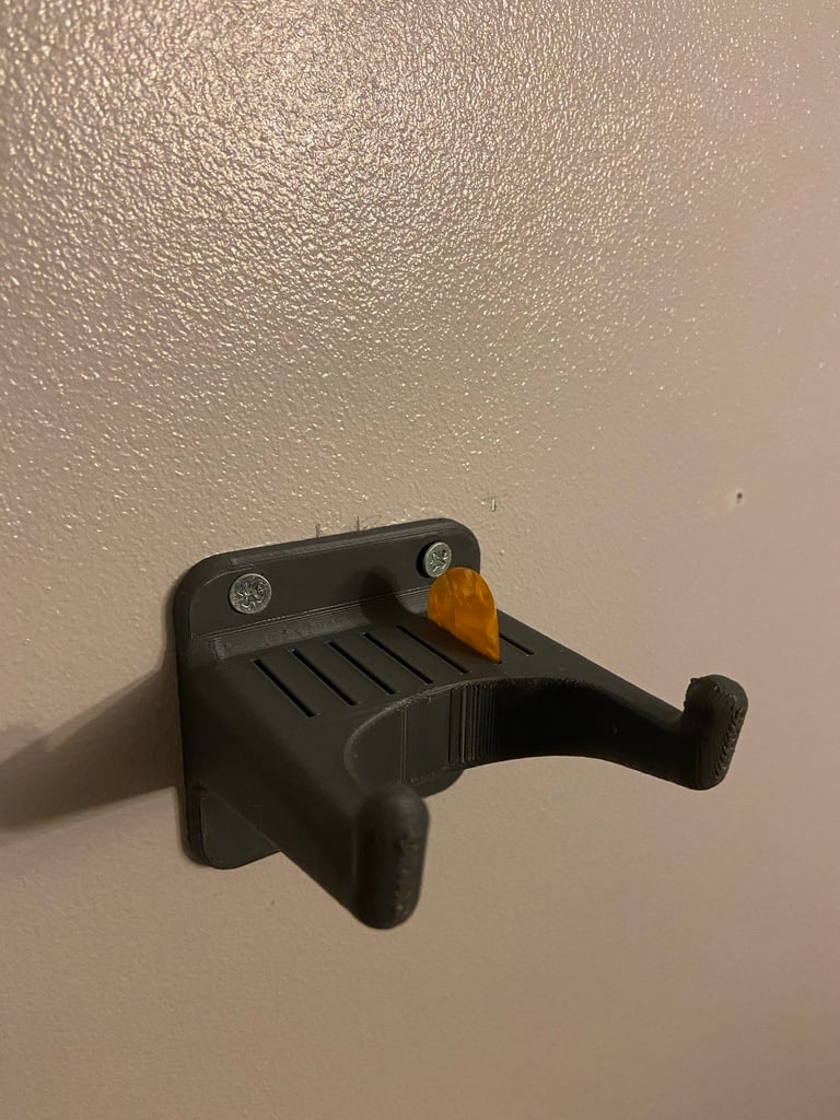 Η Guitar Wall Mount είναι ένας εύκολος και αποτελεσματικός τρόπος αποθήκευσης της κιθάρας σας. Με αυτή την επιτοίχια βάση μπορείτε εύκολα να κρεμάσετε την κιθάρα σας, η οποία όχι μόνο απελευθερώνει χώρο στο δάπεδο, αλλά και προστατεύει την κιθάρα σας από πιθανές ζημιές από το να βρίσκεται τριγύρω. Η βάση διαθέτει επίσης ενσωματωμένο χώρο για να κρατάτε μια σειρά από τις αγαπημένες σας πένες κιθάρας και ένα μέρος για να κρεμάτε το λουράκι σας.