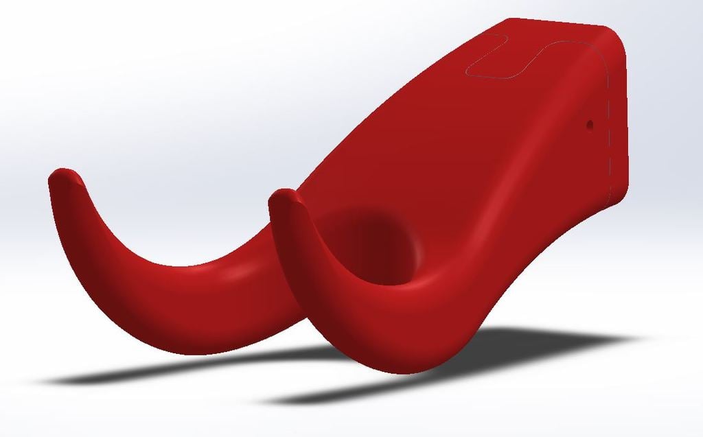 Μια μινιμαλιστική βάση τοίχου για γιουκαλίλι. Τα δύο μέρη μπορούν να διαχωριστούν για εκτύπωση. Επιτρέπεται διάκενο 0,005" στην ουρά χελιδονιού, το οποίο εξασφαλίζει σφιχτή εφαρμογή μεταξύ των δύο μερών. Το πίσω μέρος στερεώνεται στον τοίχο χρησιμοποιώντας βίδες γυψοσανίδας με κεφαλή 0,32" και στρογγυλεμένη εσοχή (φιλέτο). Μια μικρή τρύπα στο πλάι των δύο στοιχείων τα κλειδώνει με ασφάλεια μεταξύ τους μέσω μιας μικρής καρφίτσας, προσαρμοσμένης τέλεια σε ένα νύχι άκρης.