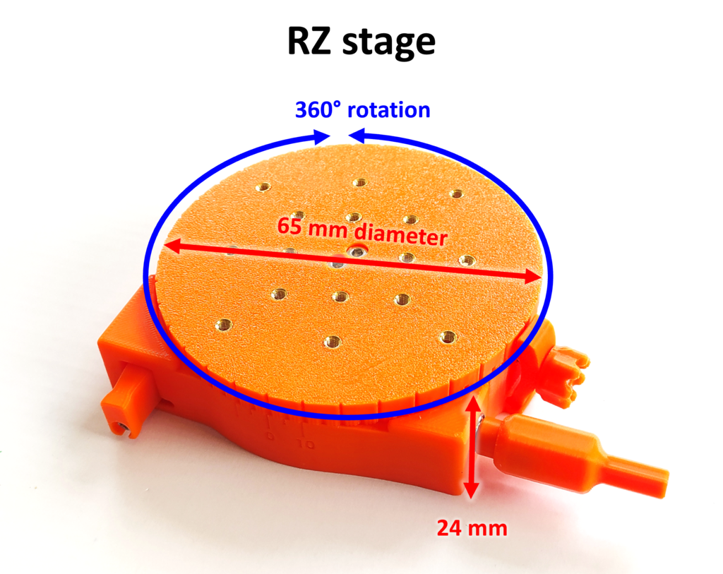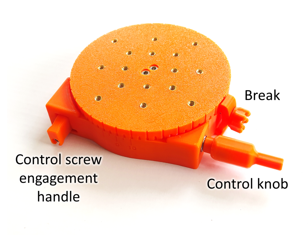 Η εκτυπωμένη πλατφόρμα περιστροφής έχει σχεδιαστεί για ακριβείς κινήσεις, που επιτρέπουν μια ακρίβεια θέσης έως και 10 μικρόμετρα. Αποτελείται από τμήματα 3D εκτύπωσης καθώς και από 6200 και MR95-zz ρουλεμάν, διασφαλίζοντας ομαλή περιστροφή. Η πλατφόρμα είναι ιδανική για εφαρμογές όπου η ακρίβεια είναι κρίσιμη, όπως μικροχειρισμός και οπλική ρύθμιση.
